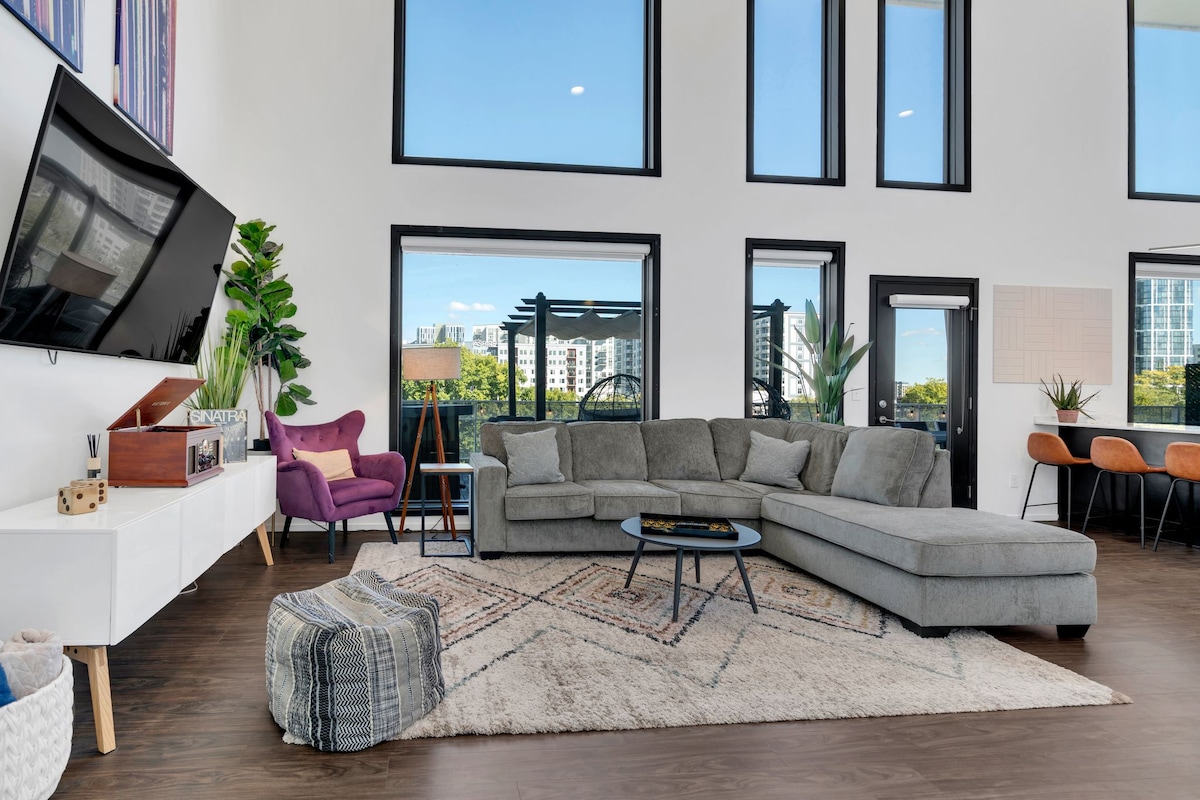 ★"Olen majoittunut lukuisissa Airbnb-kohteissa, ja Abby oli nopein ja ystävällisin majoittaja, joka minulla on koskaan ollut!" ~Kattohuoneisto henkeäsalpaavilla kaupunkinäkymillä ~Ensiluokkainen sijainti Nashvillen keskustan sydämessä ~Täydellinen erikoistilaisuuksiin tai pienille ryhmille (4 hengen majoitus) ~Turvallinen, varattu pysäköinti* (25 $ yöltä) ~Kattouima-allas ~Lux-työtilat +oleskelutilat ~Moderni kuntokeskus, jooga ja pyöräilystudio ~Täysin varustettu/varustettu keittiö 1 min→Music City Convention Center 5 min→Broadway+Ryman 10 min→Nashvillen lentokenttä/BNA ✈