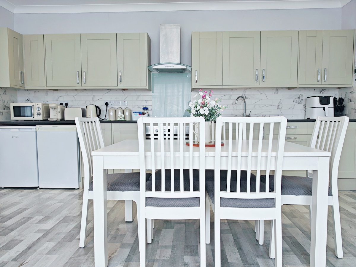 Moderni tilava bungalow, jossa on avoin pohjaratkaisu, täydellinen perheille, yrityksille, työharjoitteluun, urakoitsijoille, sairaanhoitajille ja lääkäreille sekä vapaa-ajan viettoon pidempien majoittumisten aikana valtavilla alennuksilla. *85" TV ja suuri U-muotoinen sohva *Wi-Fi ja Netflix *Täysin varusteltu avara ruokailutila. Täydellinen sijainti, jossa on kauppoja ja moottoritie pääsy Swanseaan, Cardiffiin ja Baglanin rautatieasemalle on 1 minuutin päässä. Kohteessa on käytettävissä pesukone ja kuivausrumpu.