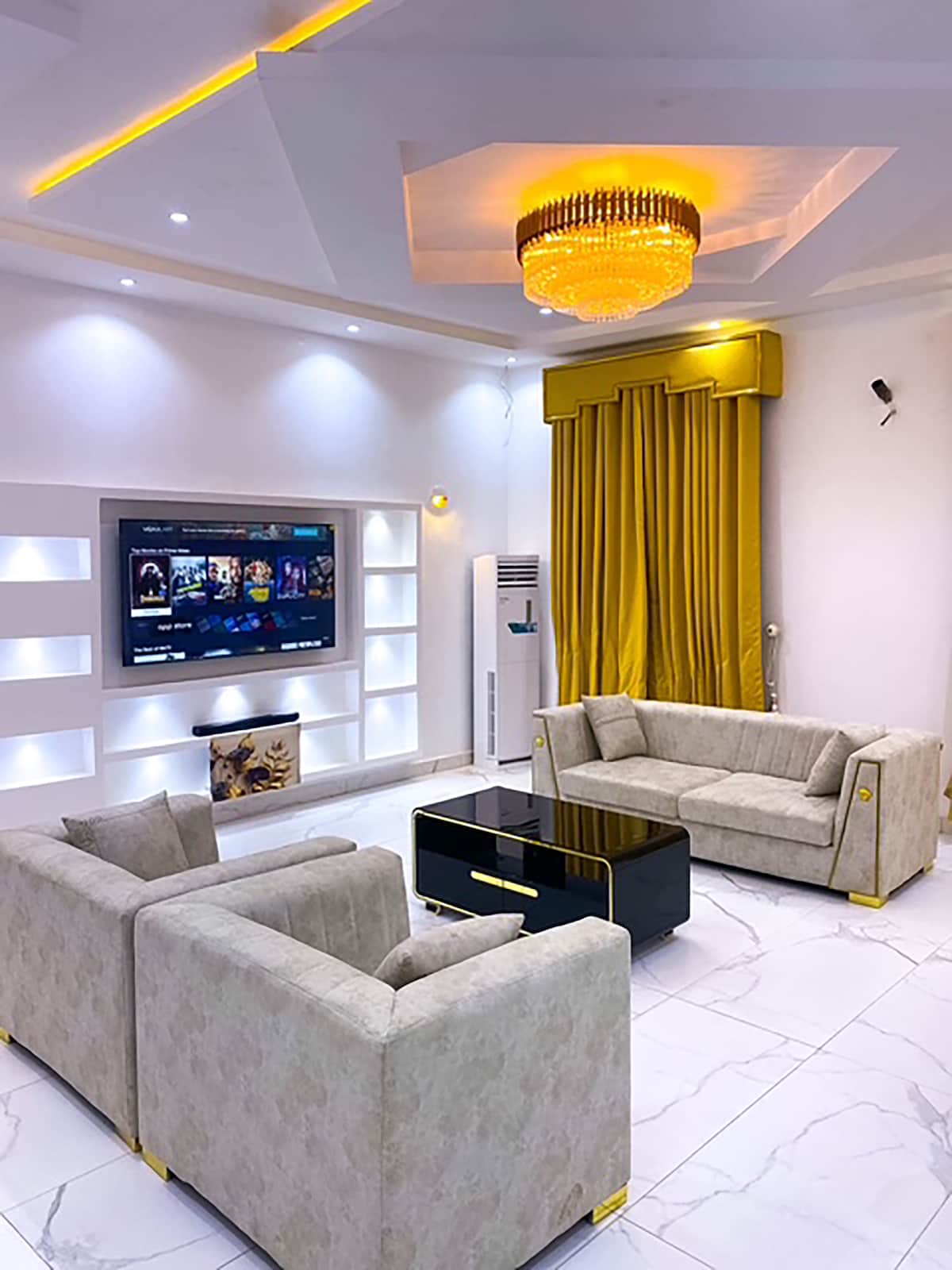 Ovi koodilla Yksityiset parvekkeet Pyykinpesukone Kodikkaat 3 makuuhuonetta 5 ilmastointilaitetta Työtila Kalustettu olohuone Täysin varustettu keittiö 4 wc: tä ja 3 kylpyhuonetta Starlink & Fibre Optic Wi-Fi Ympärivuorokautinen valo (aurinko | invertteri | Gen) If No Power Grid: Gen: 6am-8am, 6pm-12am but inverter always on. Lähellä markkinoita, yökerhoja, ravintoloita ja kauppoja Puhtaat ja puhtaat vuodevaatteet ja pyyhkeet Seesteinen, turvallinen ja kaunis naapurusto 85", 65", 50" ja 50" älytelevisio (Prime, Netflix)