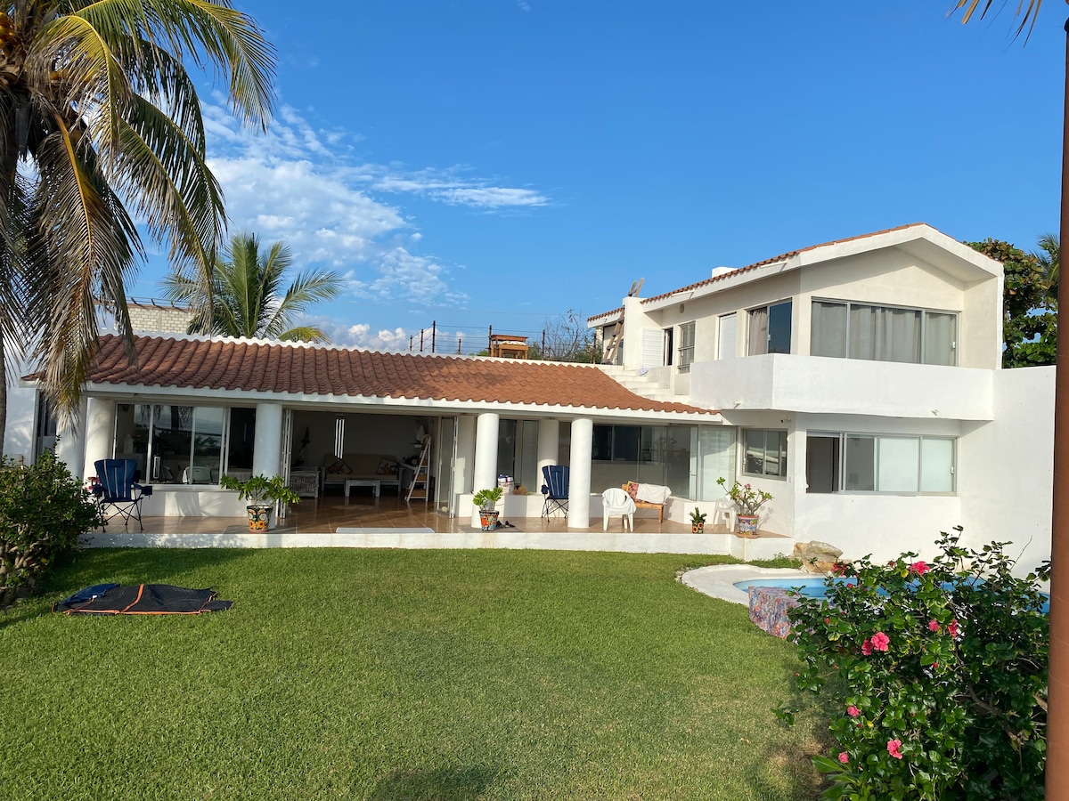 SUPERALENNUS 🏦: Sunnuntaista torstaihin Sijainti Acapulcossa, Pie de la Cuestan edessä, yksityinen ranta 🏝️ ja suora pääsy merelle Sisältää kokin! Joten voit vain rentoutua ja nauttia Ihanteellinen talo suurille ryhmille, kapasiteetti jopa 18 henkilöä 5 erittäin tilavaa makuuhuonetta, joissa on ilmastointi, 4 kylpyhuonetta ja 1/2 Olohuone ja ruokailutila. Yksityinen uima-allas, jossa on lasten roiskeallas Puutarha, terassi ja aurinkotuolit uima-altaalla ja rannalla Täysin varustettu keittiö, ulkoruokailutila Grilli Kirveiden sarja Billa-pöytä