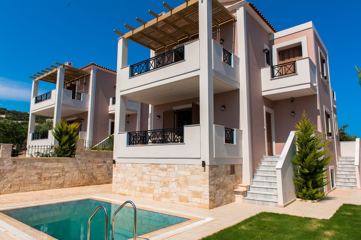 Terrazzo Luxury Villas on äskettäin rakennettu kolmen huvilan kompleksi Pigianos Kamposissa. Huvilat sijaitsevat erinomaisella paikalla vain lyhyen kävelymatkan päässä rannalta ja paikallisista mukavuuksista, ja ne ovat ihanteellisia perheille. Jokaisessa huvilassa on suuret nurmikot, leikkipaikka ja lasten osasto yksityisessä uima-altaassa – naapurissa on jopa lasten leikkipaikka. Jokaisessa huvilassa on 3 makuuhuonetta, joissa on kylpyhuone ja joissa voi majoittua 6 vierasta.