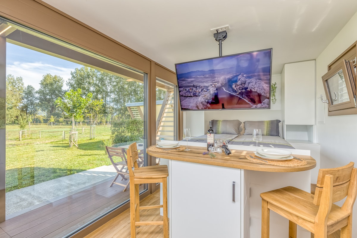 Rentoudu ja virkisty Slovenian maaseudun sydämessä. Tämä moderni matkailuauto sijaitsee rauhallisella paikalla ekoturismitilan alueella, ja se tarjoaa tyylikkään lomakohteen kahdelle. Maatilalla on kolme satavuotias mylly, yksityinen ranta, ja siellä on todistus luomuviljelystä. Vieraat voivat ostaa majoittajalta erilaisia tuotteita, kuten munia, lampaita, ankkaa, kalkkunaa ja kanaa, ja jopa kokea yön nukkumisen heinäladossa.