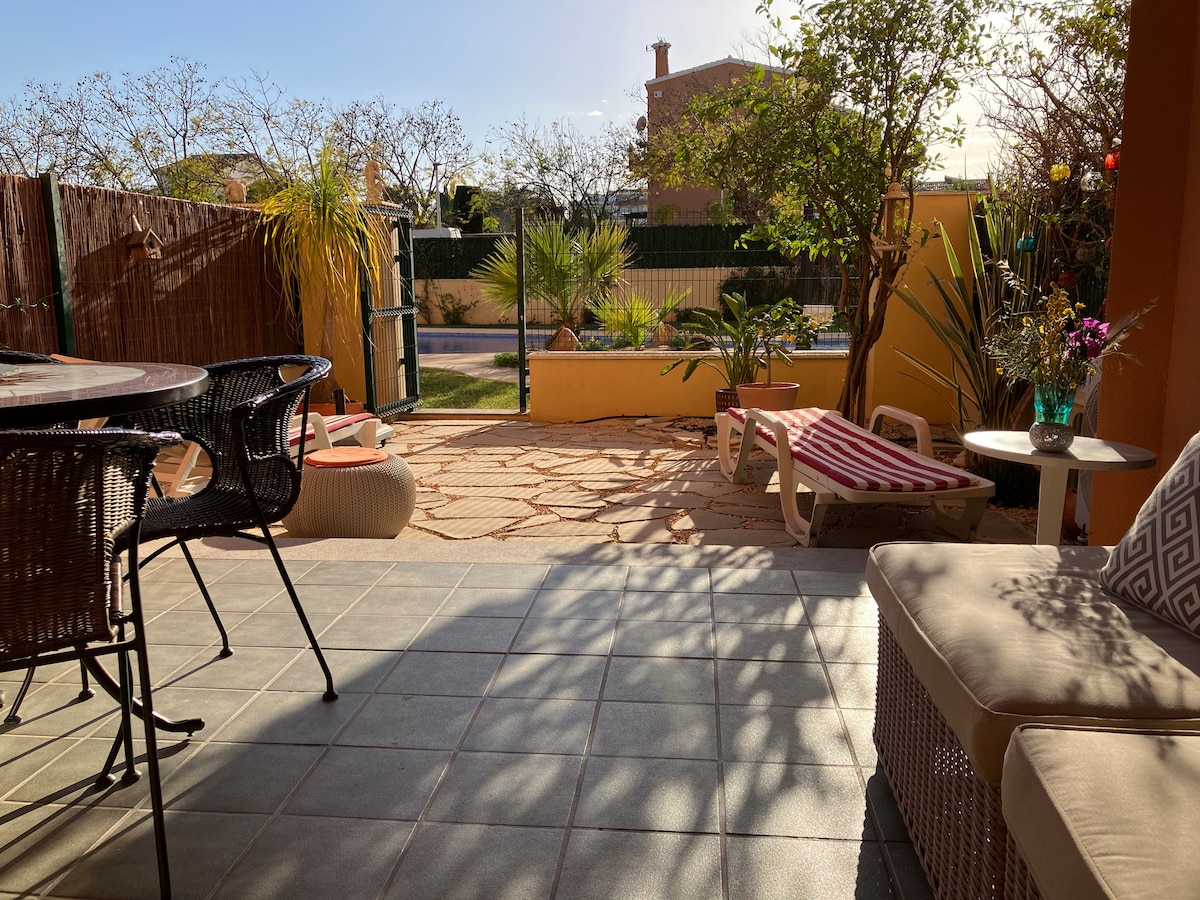 Keskimääräinen arvio 4,81/5, 47 arvosteluaIhana yhden makuuhuoneen puutarha-asunto, uima-allas/poreallas, ilmastointi/wifi