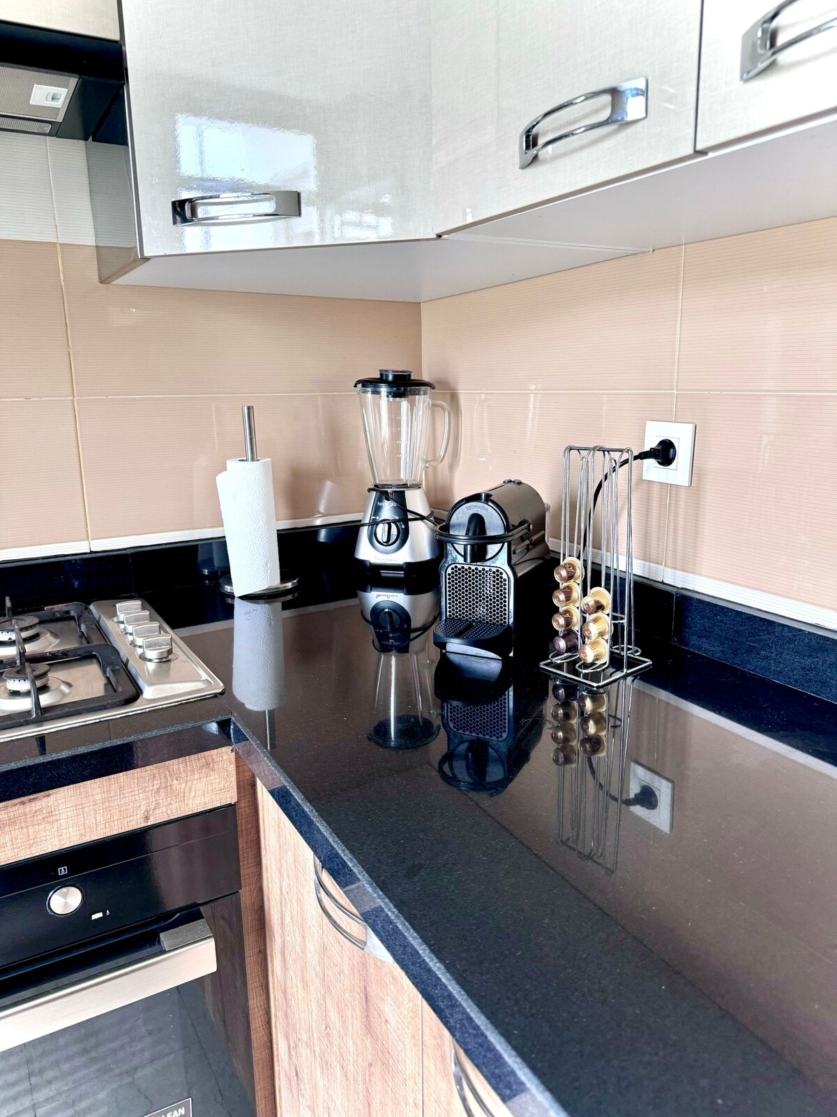 Rentoudu tässä rauhallisessa ja tyylikkäässä tilassa, jossa on kaikki mukavuudet, joita tarvitset viihtyisään majoittumiseen. Kaksi viihtyisää makuuhuonetta, joissa on oma parveke, josta on näkymä kaupungin taivaanrantaan, ja pääsy sisäaltaalle. Sijaitsee kaupungin sydämessä vain 10 minuutin päässä rannalta, ja siellä on täysin varusteltu keittiö ja mukava olohuone, jossa on suuri älytelevisio, jossa on Netflix ja kaikki TV-kanavat. Huoneistossa on VIP-maanalainen pysäköintipaikka, joka sijaitsee vain 5 metrin päässä hissistä.