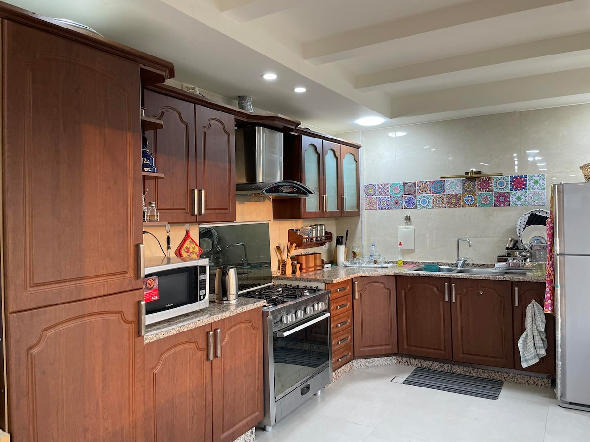 Pakene omaan henkilökohtaiseen paratiisiisi Irbidissa, Zabda! Upeassa huoneistossamme on oma uima-allas, grilli ja runsaasti puita, joiden ansiosta ulkotilat ovat rauhalliset. Sisällä on kaksi mukavaa makuuhuonetta, täysin varustettu keittiö ja tilava oleskelutila. Olitpa rentoutumassa aurinkotuoleilla, grillaamassa herkkuja tai vain nauttimassa rauhallisesta ympäristöstä, tunnet olevasi kaukana arjen stressistä. Varaa nyt ja aloita unelmalomasi!