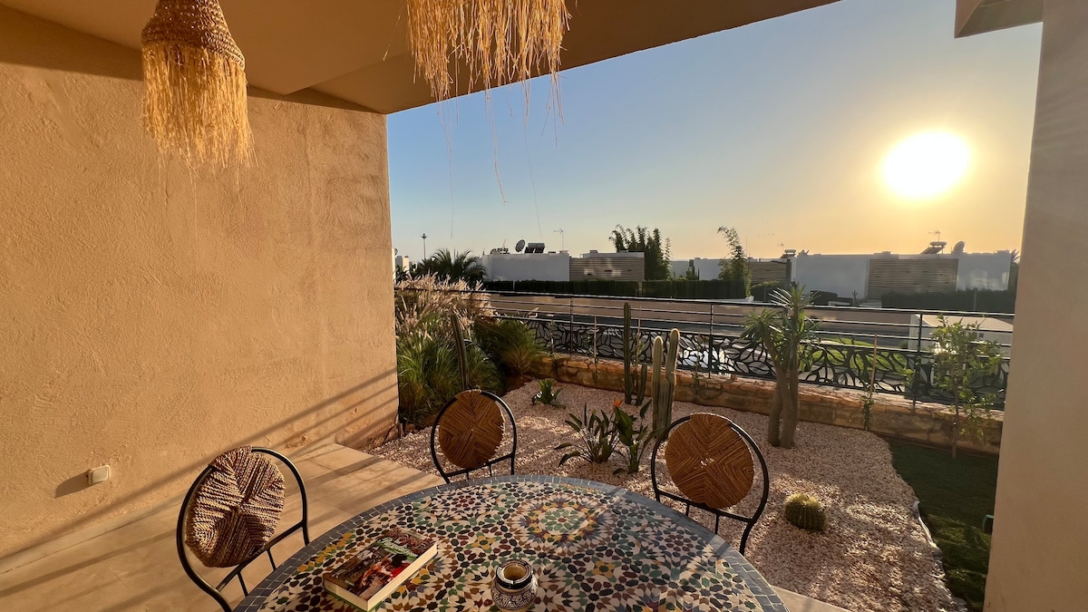 Signature Duplex Between Sky & Ocean – modernia eleganssia ja marokkolaista viehätystä Koe Taghazoutin taika tässä kirkkaassa duplex-huoneistossa, jossa yhdistyvät marokkolainen perinne ja moderni mukavuus. Henkeäsalpaava merinäkymä, terassi auringonlaskun ihastelemiseen, hiljaiset uima-altaat ja rauhoittava tunnelma. Paikka, jossa aika hidastuu, täydellinen latautumiseen ja marokkolaisen vieraanvaraisuuden nauttimiseen. 🕊️