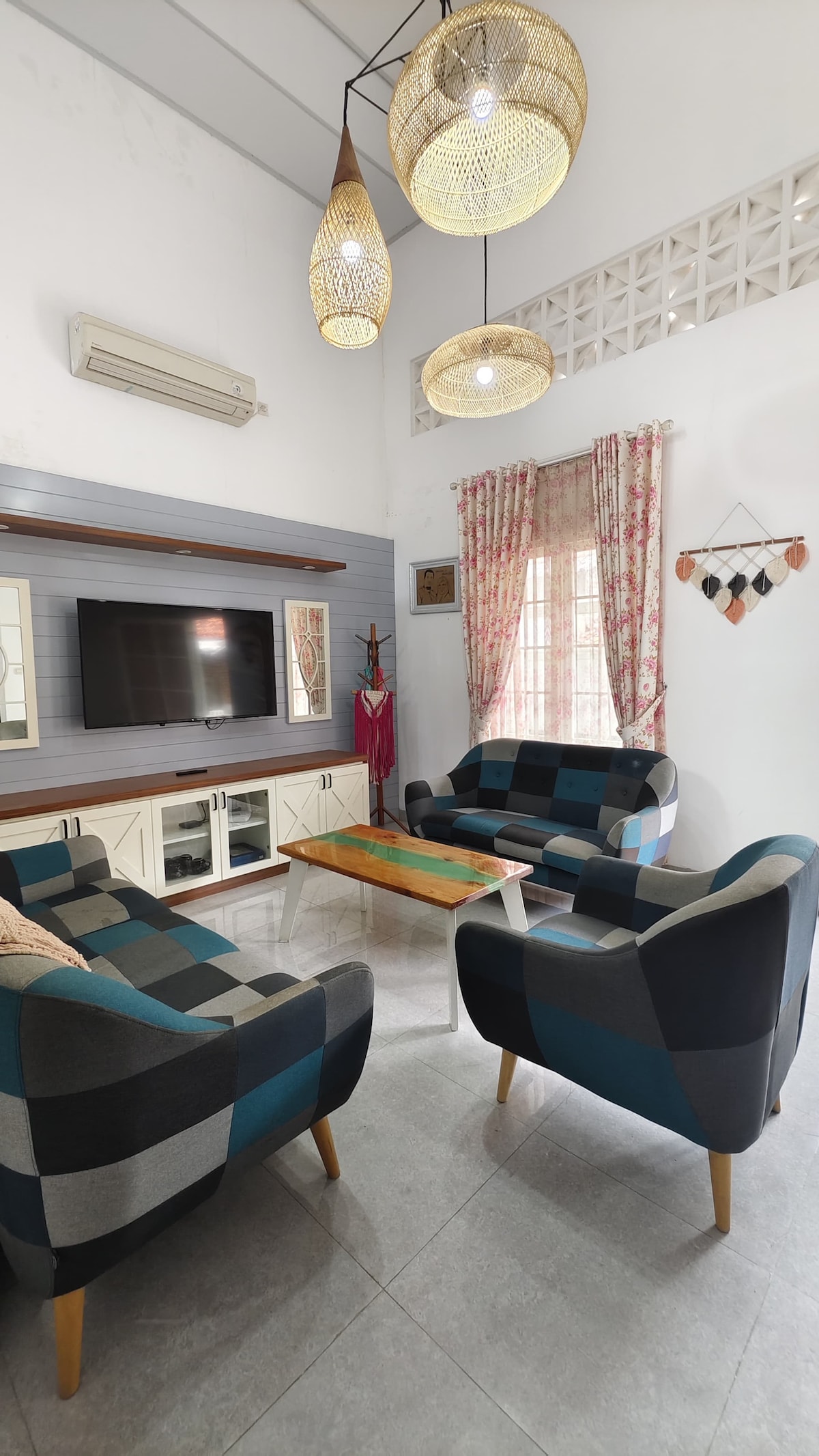 sebuah rumah yang terletak di perumahan perkampungan dengan nuansa kampung, udara sejuk dan nyaman untuk beristirahat bareng keluarga.. ruang tamu terletak di depan rumah dan disetting untuk kebutuhan santai menikmati kopi atau teh dengan keluarga.