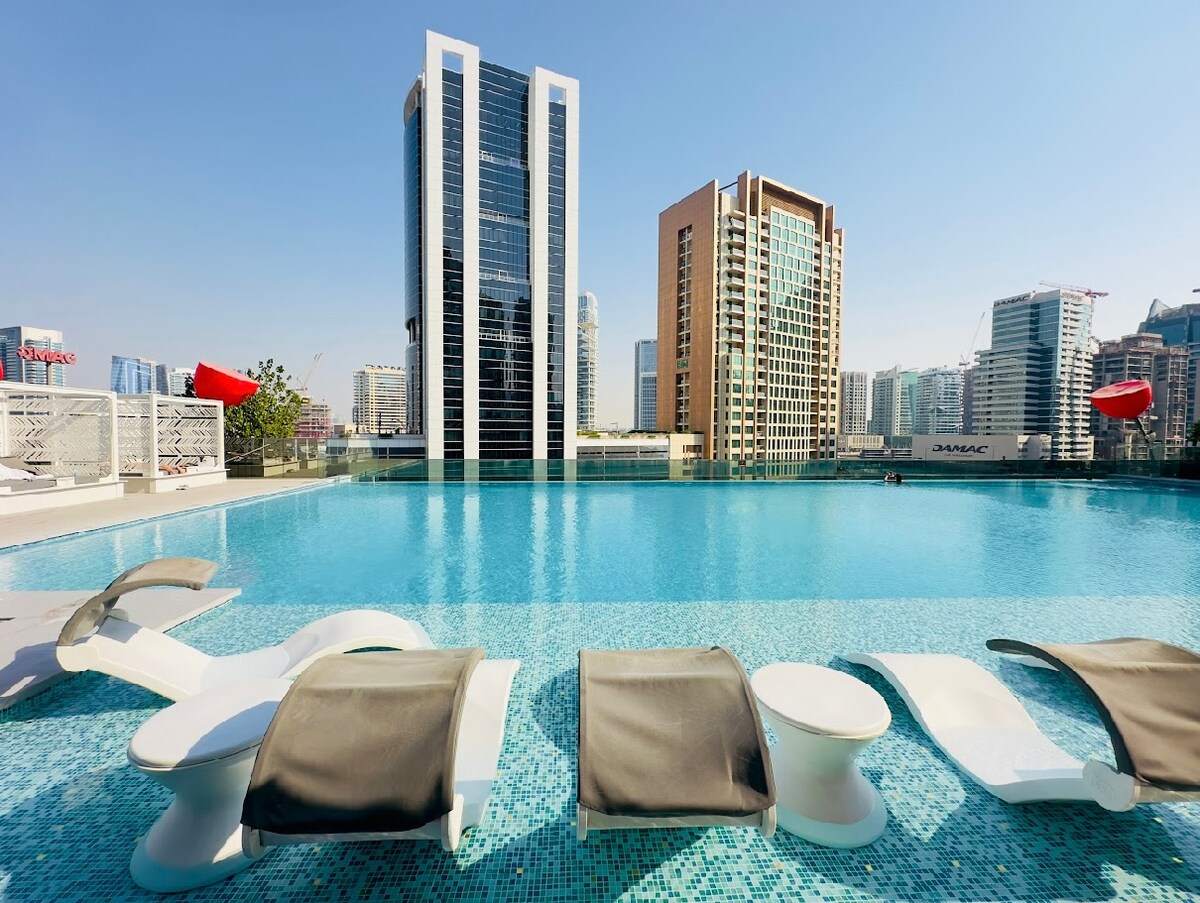 Majoitu 5 tähden ylellisyydessä Dubain korkeimmalla infinity-altaalla! Pakene 33. kerroksen huoneistoomme Business Bayssä, jossa on 1 makuuhuone, 1,5 kylpyhuonetta ja upeat näkymät. Kaikki parhaat paikat sijaitsevat vain 5 minuutin päässä Dubai Mall -ostoskeskuksesta ja 4 minuutin päässä metroasemalta. Ainutlaatuinen tarjous: ★ Ilmaiset lentokenttäkuljetukset yli 21 päivän majoittumisiin. ★ 20% alennusta rakennuksen mukavuuksista, mukaan lukien baarit, ravintolat, kauneushoitola ja kylpylä