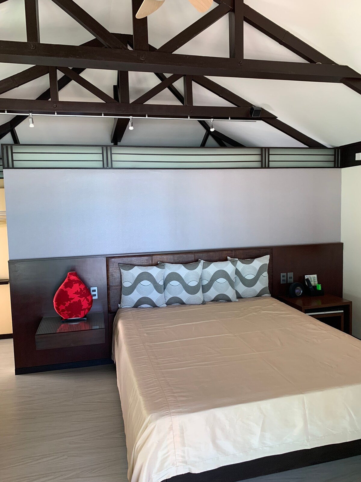 ASIANA - The upper floor of Slate House is one big room (40 sqm) with a bathroom, a sleep and living area. Huone avautuu lattiasta kattoon ulottuvilla liukuovilla verannalle, jolta on henkeäsalpaava näkymä White Beachille. Tässä huoneessa on lämmin aasialaisen innoittama aihe, joka sopii hyvin yhteen Euroopan kiiltävien ultramodernien kalusteiden kanssa. Mukavuuksiin kuuluu kylpyhuone ja wc, minibaari, tallelokero, LCD- tai plasmatelevisio, hifi-DVD-tilajärjestelmä, erittäin hiljainen split-tyypin ilmastointi, LAN- ja WiFi-internetyhteys, siivouspalvelu ja varmuuskopiogeneraattori. Asiana: Kapasiteetti: enintään 2 henkilöä Kylpyhuoneiden määrä: 1 Vuoteet yhteensä: 1 parivuode ***** Korkea ja hiljainen hinta voi olla.