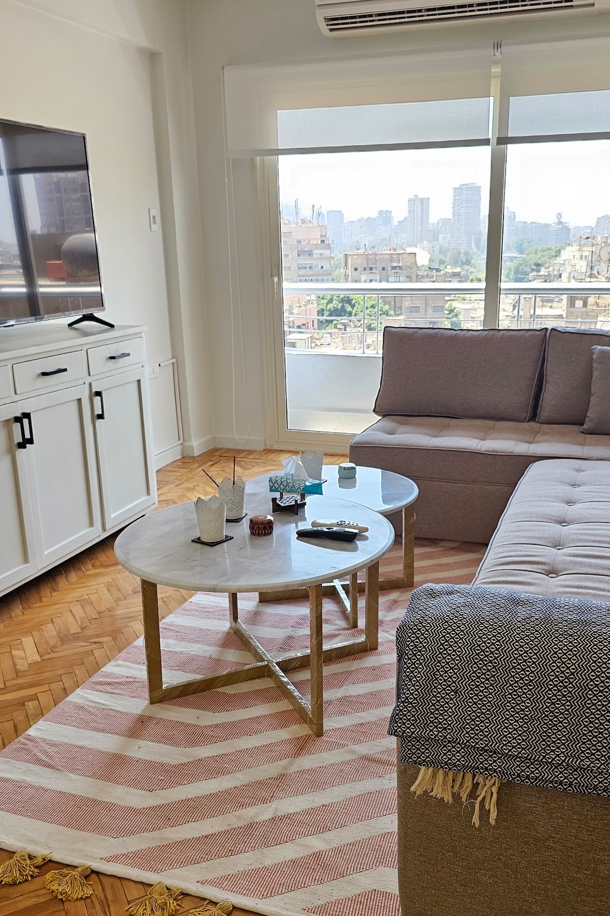 Bright, sunny and warm this super quiet space boasts unobstructed views of Zamalek from all it’s rooms. The place offers a unique style reminiscent of the Belle Epoque (golden age) of Zamalek, with a modern touch. The best time to stay here is during the cold months of winter as all it’s windows are facing the south-west side The Metro Subway is a 3min walk Check in possible at anytime, a key is available with the doorman in late hours. (No power cuts 🤫)