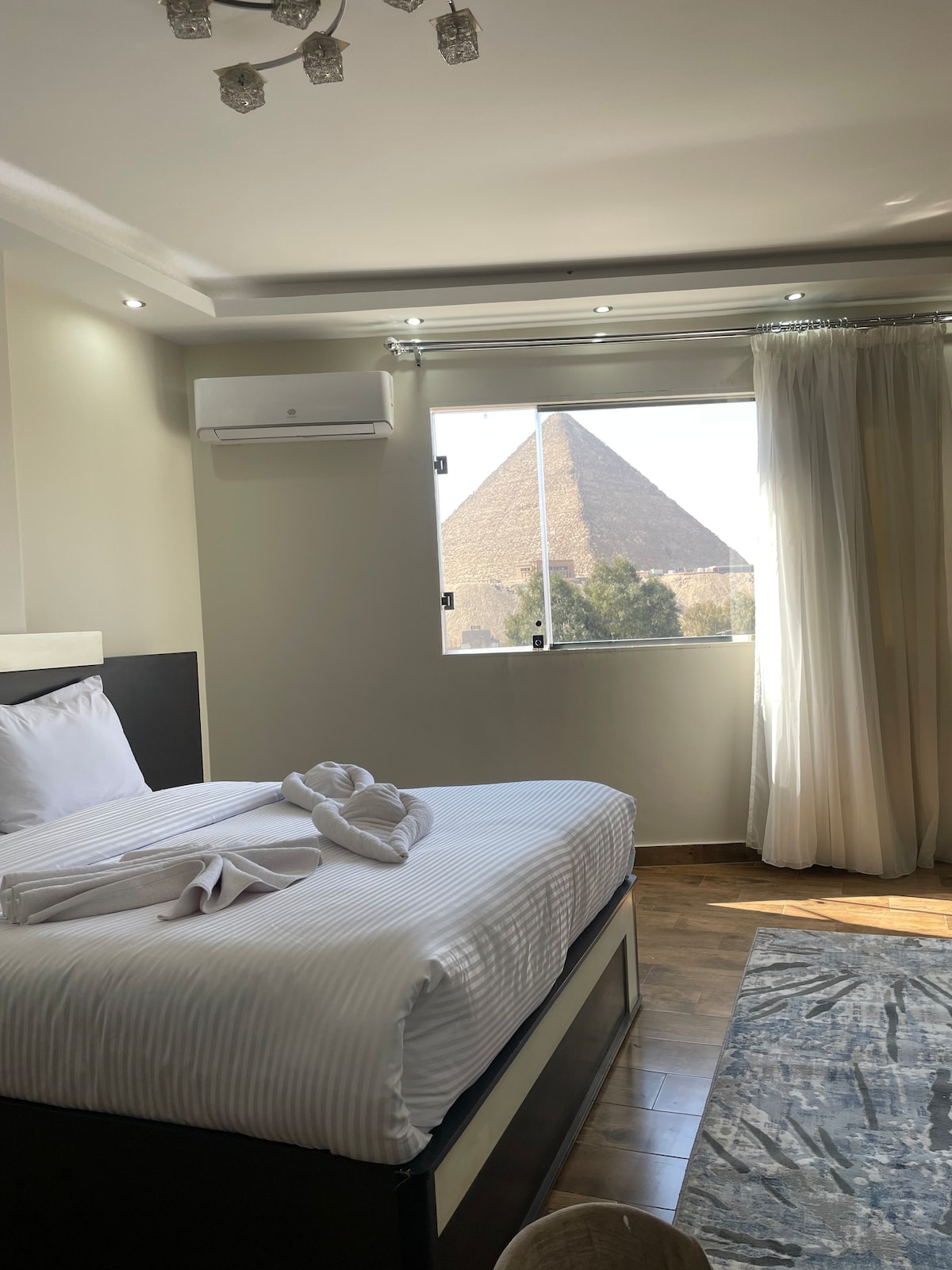 Tervetuloa ainutlaatuiseen asumiskokemukseen! Tästä ylellisestä huoneistosta on henkeäsalpaava, esteetön näkymä Khufun suureen pyramidiin, joka on yksi antiikin maailman seitsemästä ihmeestä. Täydellisesti sijaitsevassa asunnossa yhdistyvät moderni tyylikkyys ja historiallinen loisto. Huoneistoamme ylläpitää omistaja, joka on työskennellyt hotellialalla monia vuosia ja ymmärtää, mitä mukava majoittuminen tarkoittaa.