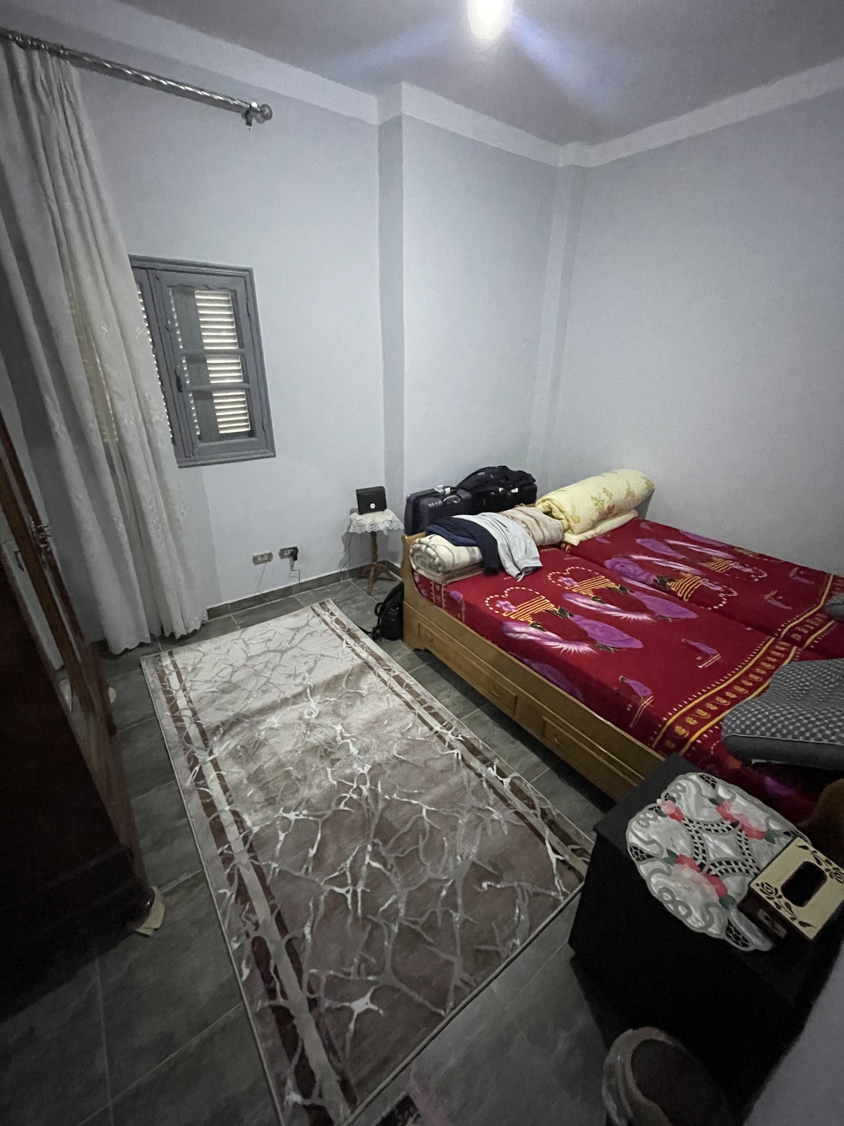 Hei kaikki! Talomme sijaitsee Port Saidin sydämessä! Huoneistomme on erittäin valtava, mukava ja viihtyisä. Kun astut sisään, näet tyylikkään olohuoneen. Huoneistossa on 2 suurta makuuhuonetta ja yksi olohuone , taulu-tv satelliittikanavilla, varustettu keittiö, jossa on mikroaaltouuni ja jääkaappi. Huoneistomme on 8 minuutin päässä merestä ja 5 minuutin päässä Suezin kanavalta.