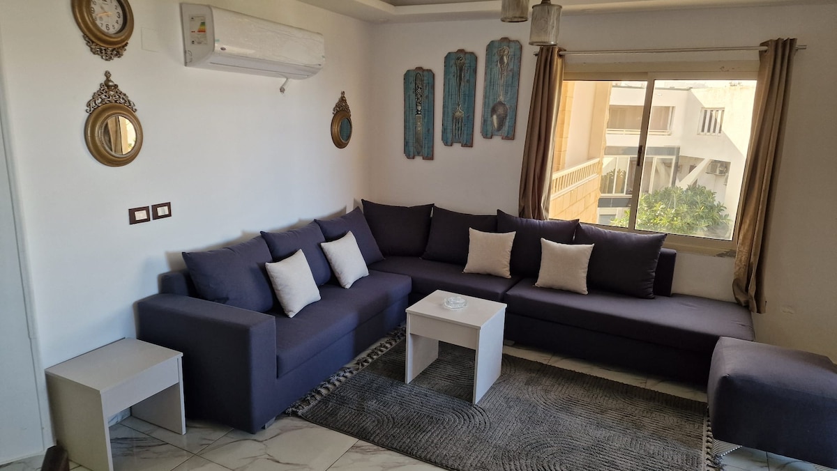 5 minuutin kävelymatka rannalle, ravintoloihin , kahviloihin 🏖️ Hieno ja moderni sisustettu 2 makuuhuoneen huoneisto Aleksandriassa arvostetulla alueella / varustettu huoneisto: pesukone, 3 ilmastointilaitetta kaikissa huoneissa/ olohuoneessa, 3 litteänäyttöistä televisiota jokaisessa huoneessa, mikroaaltouuni, jääkaappi ja lämmin suihku Avioparit ovat ainoa poikkeus eurooppalaisille ja pohjoisamerikkalaisille. Vain kunnioittavat sinkut. Henkilötodistukset tai vihkitodistus vaaditaan ennen sisäänkirjautumista tai sisäänkirjautumisen yhteydessä arvostettu rakennus on 5 minuutin kävelymatkan päässä mereltä (Ei merinäkymää)
