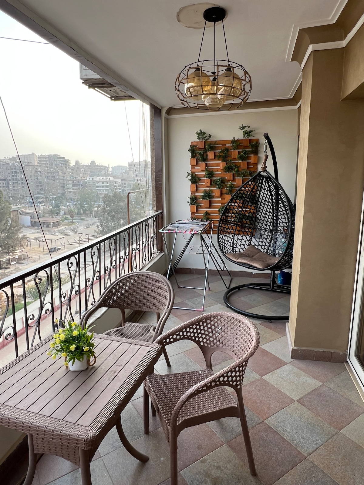 Tervetuloa kotiisi, joka sopii lyhyisiin ja pitkiin majoittumisiin. Tilava 2 makuuhuoneen huoneistomme on vain 5 minuutin päässä Kairon lentokentältä. Makuuhuoneessa on king-size-vuode ja vauvansänky lapsillesi (0-8-vuotiaat). Toisessa makuuhuoneessa on kaksi keskikokoista vuodetta. 50 tuuman TV: ssä (Netflix mukana) on täysin varustettu keittiö, jossa on kaikki, mitä tarvitset kaasuliedestä mikroaaltouuniin ja vedenkeittimeen. Rentoudu parvekkeella, jolta on kaunis puunäkymä, tai kävele vain minuutti paikallisiin supermarketteihin, leipomoihin ja moniin muihin paikkoihin.