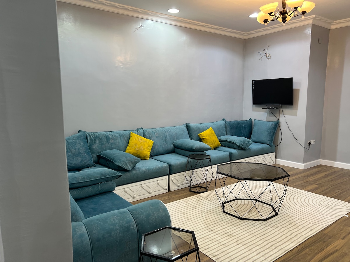 Tämä tyylikäs asunto on täydellinen perhematkoille Pohjakerros. Erillinen sisäänkäynti. Pieni ulkopiha, jossa on kaunis istuma-alue, rauhalliset värit, moderni ja tyylikäs sisustus, kaunis valaistus. Itsenäinen makuuhuone, jossa on makuuhuone, olohuone ja kahvi- ja kahvila Lisäksi on osasto, joka palvelee, kun paikalla on lapsia ja palvelija On suuri olohuone, joka on erillään makuuhuoneesta, ja jossa vieras voi vastaanottaa vierailijoitaan Paikka on valmis päivittäiseen ja viikoittaiseen vuokraukseen Huomioimme pienetkin yksityiskohdat, kuten (patjan- ja tyynynsuojat ja niiden jatkuva vaihtaminen) Automaattinen pesukone Lähistöllä on palveluita.