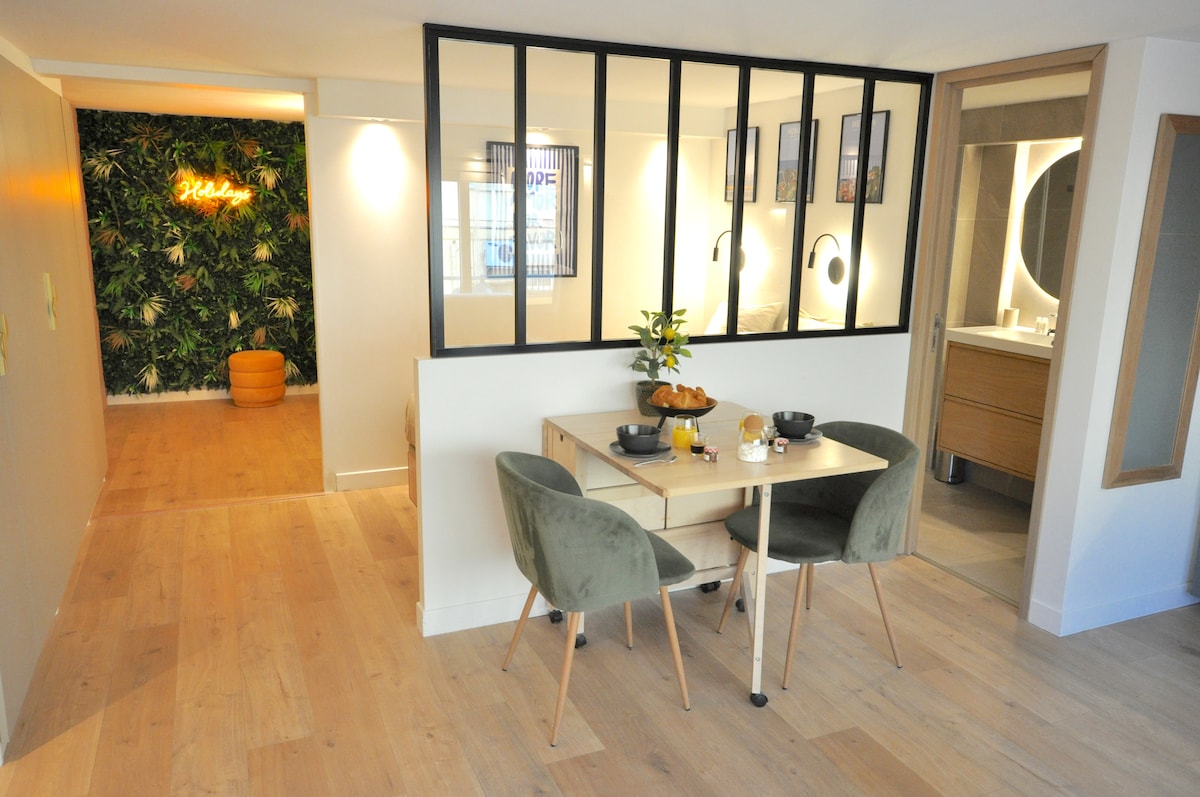 Haluat aidon ja ainutlaatuisen majoituksen perheille tai ystäväryhmille vanhankaupungin sydämessä. Kaksikerroksinen huoneistomme "Le 129" on kalustettu 6 hengelle , täysin varustettu ja tarjoaa poikkeukselliset NÄKYMÄT merelle ja upealle Plage des Sablettesille. Voit nauttia tästä huoneistosta kahdella tasolla ja tyylikkäästi sisustettu. Löydät kaikki onnistuneeseen majoittumiseen tarvittavat mukavuudet! Se sijaitsee kätevästi, ja teet kaiken jalkaisin! Liinavaatteet, kylpypyyhkeet ja wifi sisältyvät hintaan