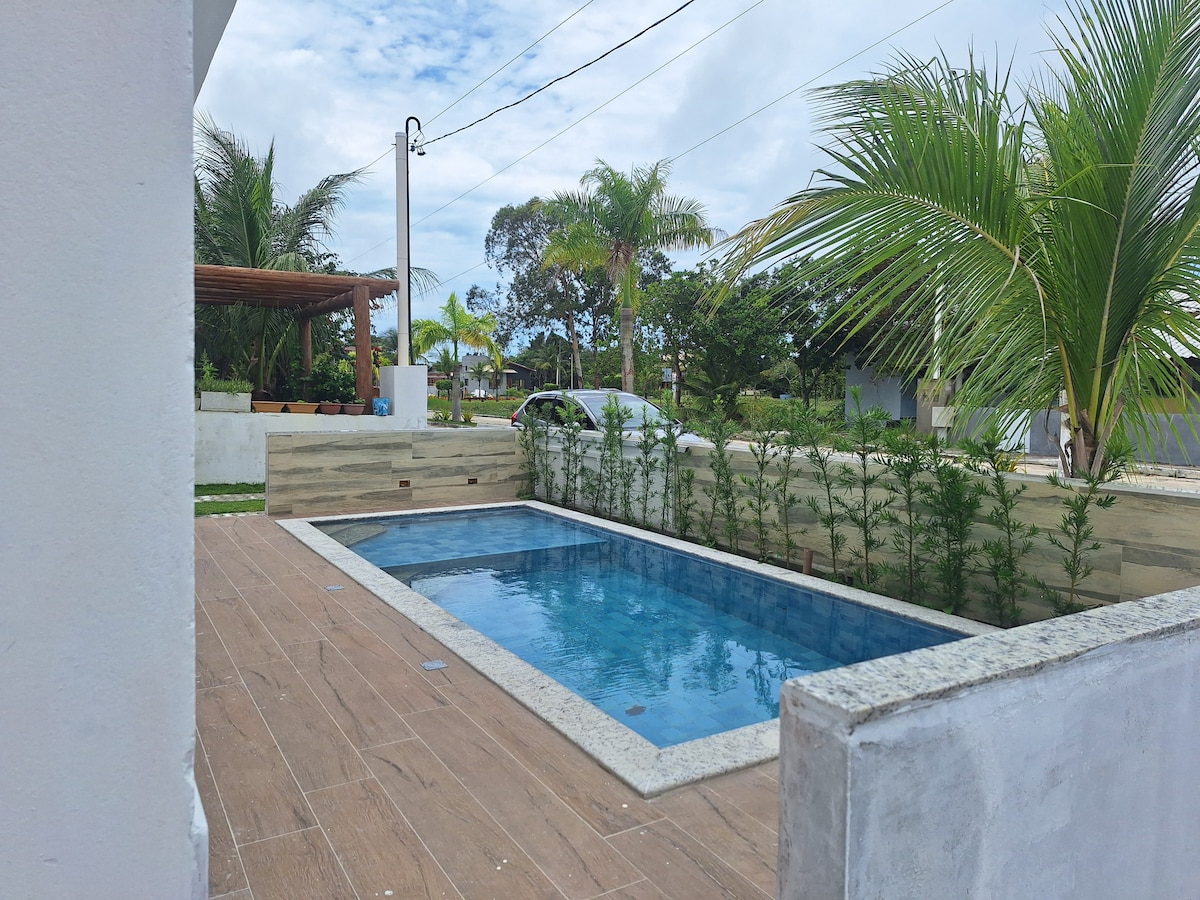The MOON HOUSE is cozy, bright, airy and welcome up to 8 people. Siinä on oma uima-allas, 3 ilmastoitua sviittiä, älytelevisio 32", varustettu keittiö, grilli, baari ja pysäköinti. 870 metrin päässä rannalta on ihanteellinen paikka rentoutua luonnon keskellä ja nauttia Bahian lämpimistä vesistä! Emme tarjoa vuodevaatteita/ kylpyammeita tai lisävuoteita! Kysy meiltä kertymämaksusta, jotta se olisi saatavilla. Réveillon/Carnavalin majoittumisen vähimmäiskesto on 5 päivää.