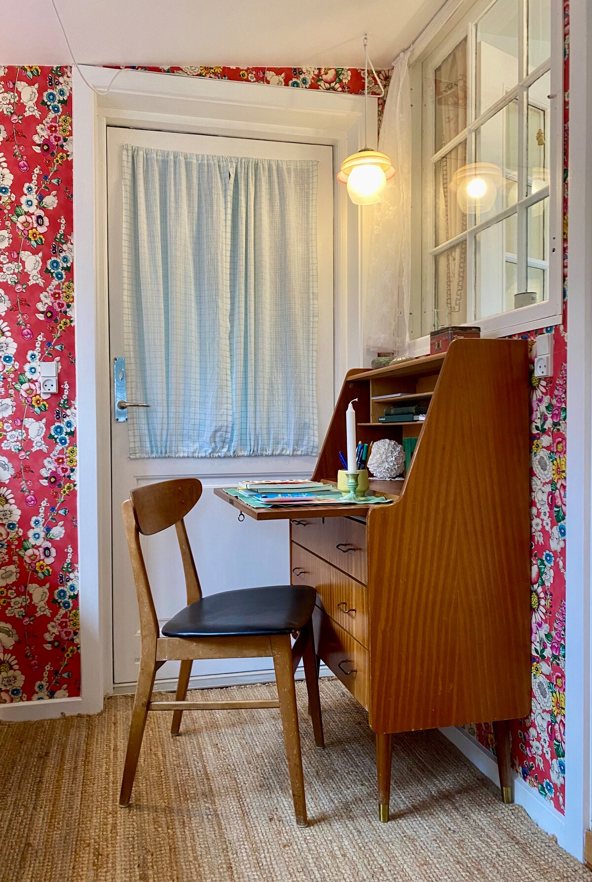 Ihana mökkihenkinen tunnelma vanhassa sepänpajassa. Viihtyisästi sisustettu vanha lisärakennus taloomme, vain kaksi minuuttia rannalta ja satamasta. Yksi tai kaksi huonetta + keittiö/olohuone ja kylpyhuone. Sänkyjä on 4, ja taitettavilla patjoilla voidaan majoittaa helposti 6 henkilöä. Jaamme puutarhan kanssamme, jossa on mahdollista grillata sopimuksen mukaan. Puutarhassa on tunnustetun taiteilijan Frederik Næblerødin tekemä seinämaalaus. Keittiö on yksinkertainen, mutta siellä on keittolevy/ liesituuletin/ jääkaappi ja espressokeitin