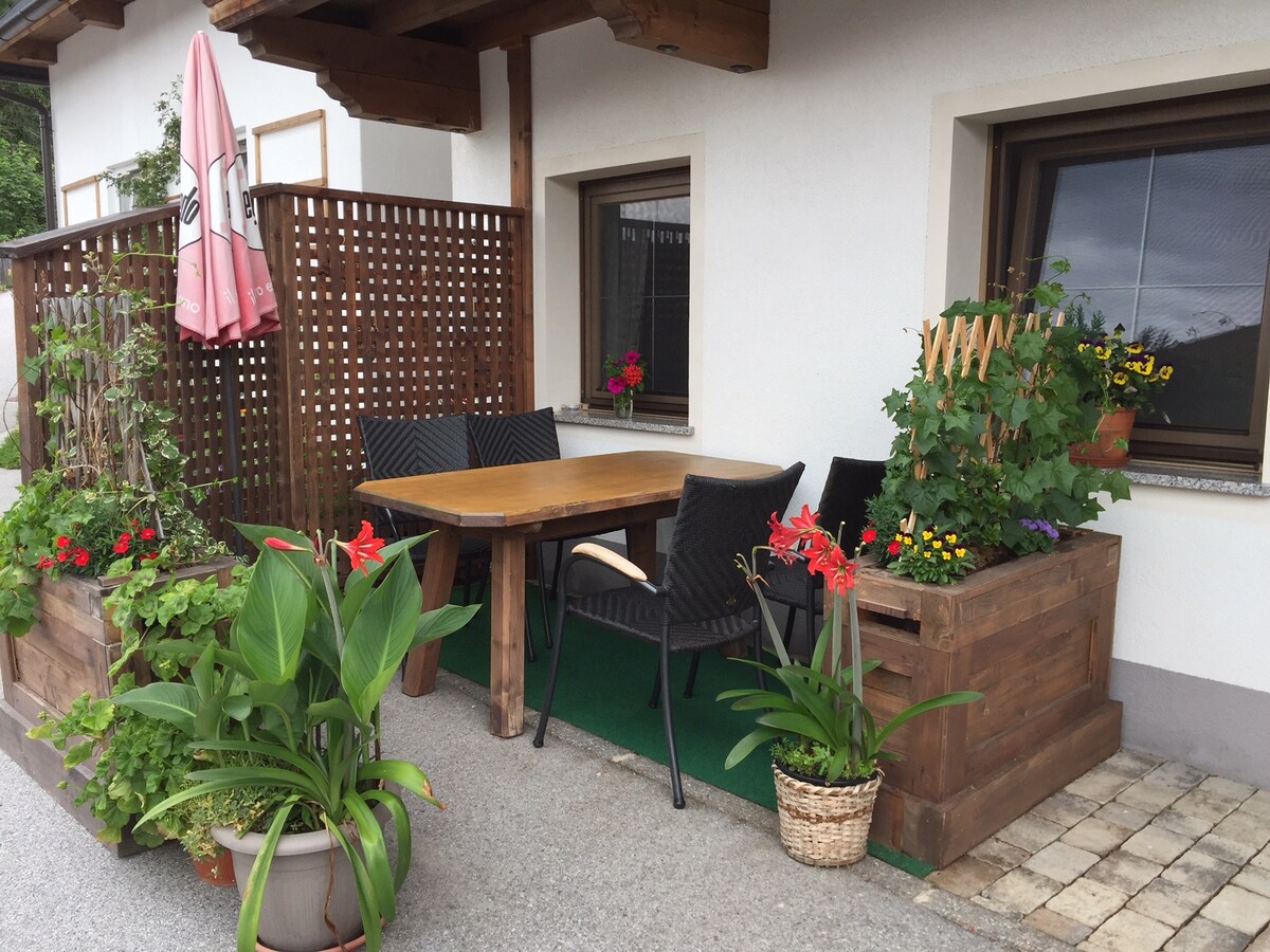Aurinkoinen loma-asunto (72 m²) Alpbachin keskustassa. Oma pieni puutarha, josta on näkymä Wiedersbergerhornille. Täysin varusteltu keittiö, jossa on astianpesukone. Oma lastenhuone, jossa on suuri kerrossänky. Kylpyhuoneessa on lattialämmitys ja kylpyamme. Muissa huoneissa on puulattia. Olo- ja ruokailuhuoneessa on viihtyisä ruotsalainen uuni. Hiihtäjillemme on tarjolla suksisaappaiden kuivain. Kaikki kaupat ja ravintolat ovat kävelyetäisyydellä. Viisi minuuttia bussipysäkille. Savuton majoitus