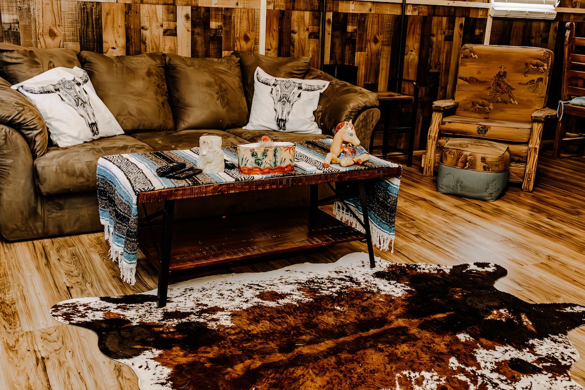 Tämä viehättävä pieni jurtta on lämmitetty ja jäähdytetty, jotta se olisi mahdollisimman mukava viileinä aavikon öinä tai auringonpaisteisina päivinä, ja se tarjoaa ainutlaatuisen Länsi-Teksasin kokemuksen! Rentoudu jaloilla varustetussa ammeessa, nauti tähtitaivaasta ulkosuihkussa ja nauti nuotiosta ulkotulisijassa. Olitpa valmistautumassa yöhön kaupungilla tai haluat hidastaa tahtia tähtitaivaan alla, Casa de Marca on täydellinen pieni lomakohde.