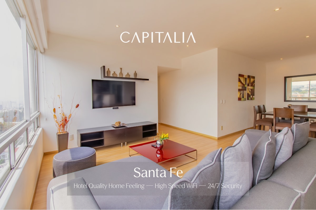 Luxury Apartment, one independent room - no loft - at Santa Fe Mexico City Come home to Peninsula Santa Fe, a stunning apartment bordering parks, business centers, and top shopping malls. Located in the heart of Santa Fe, this luxurious apartment also has a handful of exceptional features including sophisticated spaces, a fitness center, SPA, pool, top-of-the-line amenities and convenient transportation nearby.