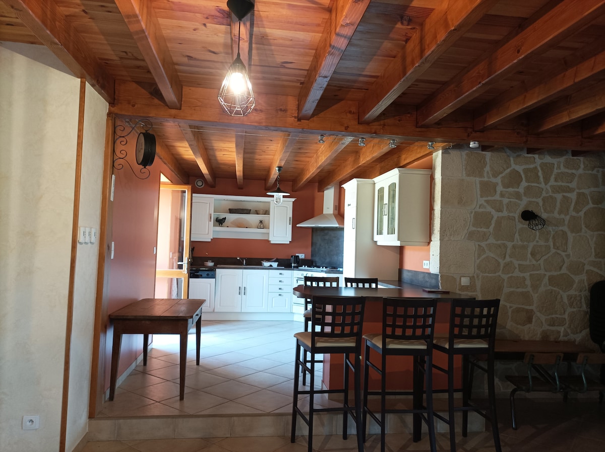 Tilava ja valoisa kivitalo, joka on kokonaan kunnostettu tyylikkäästi, sijaitsee vehreässä ympäristössä, josta on upeat näkymät Puy-de-Dômen vuorille ja metsiin. Sen kunnostuksessa yhdistyvät vanhat kivet, massiiviset palkit ja suuri takka leipä-/pizzauunilla sekä moderni, käytännöllinen, ystävällinen ja lämmin puoli. Kaunis paikka rentoutua ja viettää unohtumattomia hetkiä ystävien tai perheen kanssa rauhallisessa ja syrjäisessä paikassa, 15 minuutin päässä kaikista mukavuuksista.