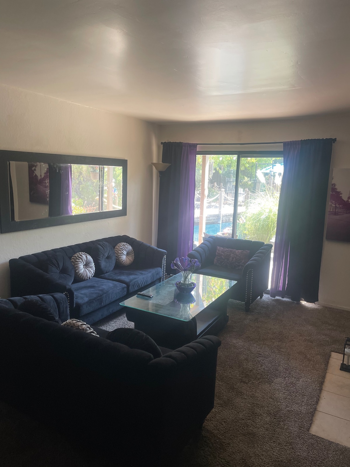 Enjoy this spacious 600 sf Pool-house suite with AMAZING views/sunsets. Have a cold drink & play music on outdoor speakers or BT boom box poolside just steps from your door. Chill under the shade if the wisteria trellis or large unbrellas. Kids & dogs will love the very large fenced yard & lush green grass. Cook in a fully stocked kitchen w/air fryer, gas grill, instant pot, etc. Sleep on a 14" miracle foam queen bed. Also has a sofa bed or Airbed for extra guests. Private patio area. 65" TV.