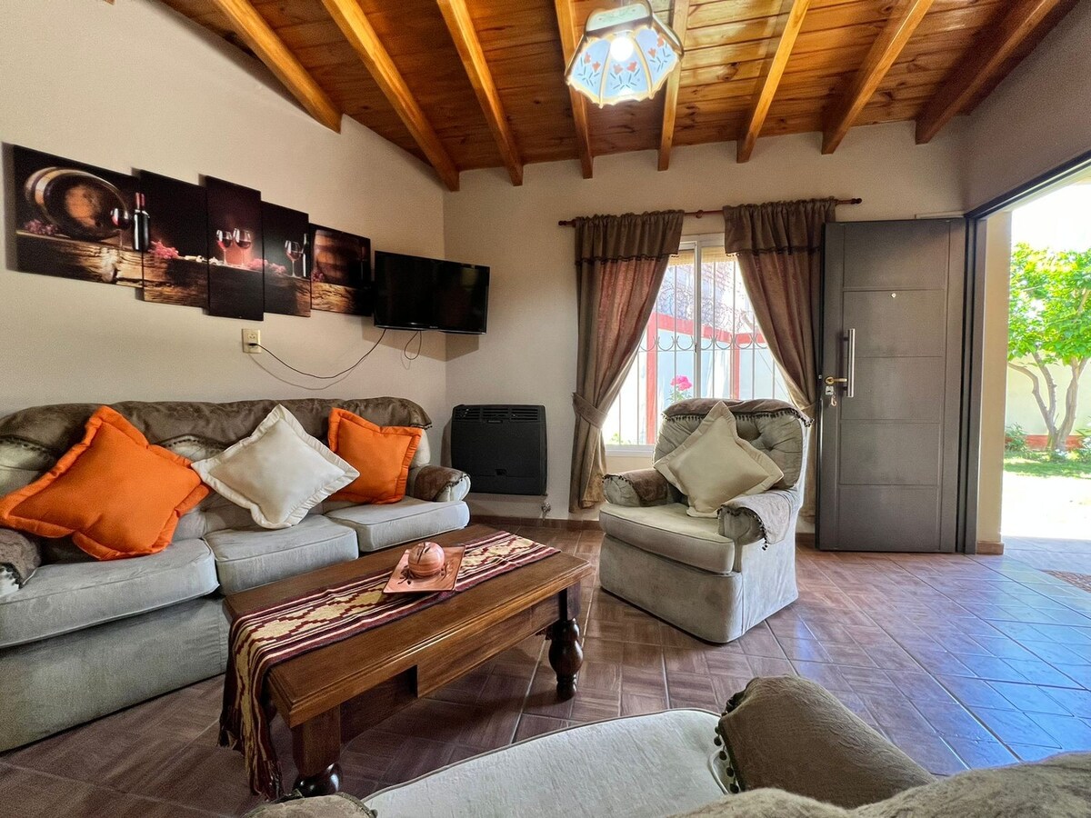 Kaunis talo, joka sijaitsee Valle de Ucon alueella sijaitsevassa yksityisessä Entrevidesin kaupunginosassa, josta on näkymät Cordón del Plata -vuoristoon ja joka on ympäröity viinitarhoilla ja poppelipuilla. Sisään tullessasi sinut vastaanottaa paikallinen puutarha, joka ympäröi tulisijaa ja galleriaa, jossa voit nauttia unohtumattomista hetkistä läheistesi seurassa, ja jakaa herkullisen paistin tai empanadas-leivonnaisia saviuunissa. Viihtyisässä talossa on ainutlaatuisia nurkkauksia, ja mukavat huoneet kutsuvat sinut lepäämään ja rentoutumaan. Uima-allas, poreallas ja kuntosali