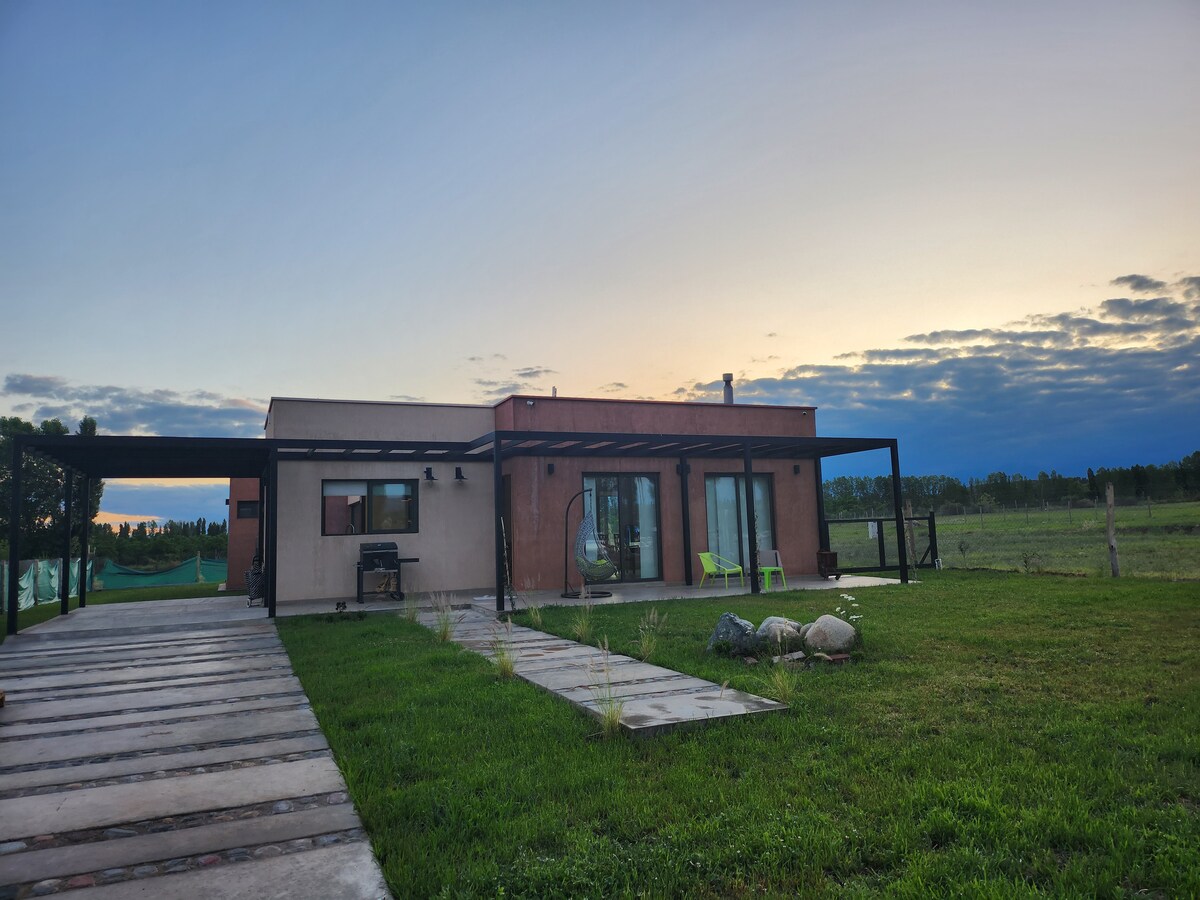 Maaseudulla sijaitseva boutique-talo, joka on suunniteltu suoraan vuorelta valituista kivistä, lasista, sementistä ja raudasta. Talosta on upeat näkymät Andien vuoristoon, ja siellä on suuri oliivipuutarha. Talon ympärillä sijaitsevat tunnetuimmat Mendozan viinitilat. Varustettu suurella keittiöllä, huoneella, jossa on terassi, ja kahdella suurella kylpyhuoneella. Se sijaitsee erittäin turvallisessa paikassa, jossa on ympärivuorokautinen yksityinen vartiointi, 5 minuutin ajomatkan päässä Chacras de Corian kaupungista. Ihanteellinen paikka irrottautua kaikesta.