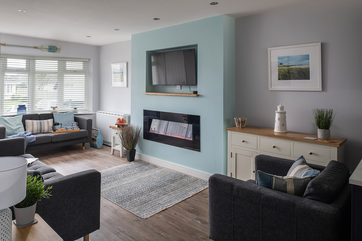 Vain aikuisille, 3 makuuhuoneen bungalow merenrantakylässä. 3 x (1000 taskujousitettu tencel) vuodetta, king-vuode, parivuode ja yhden hengen vuode, joissa voi nukkua enintään 4 aikuista (ei sovellu lapsille, lisätietoja talon säännöissä). Yksityinen suljettu takapuutarha, jossa on valaistu terassialue. 1 pieni lemmikki, joka painaa alle 14 kg. Olemme lähellä Aberffrawn upeaa rantaa, ja kynnykseltä pääsee ihastuttavalle rannikkokävelylle. Yksityinen pysäköinti yhdelle autolle ja tienvarsipysäköinti kohteen edessä.