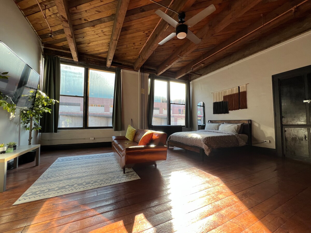 Mukava ja tyylikäs loftimme sijaitsee Detroitin historiallisen Corktownin sydämessä. Tässä rentouttavassa tilassa kannabis on sallittu. Rakennukseen on kätevä yhteys apteekkiin, ja jokiranta ja Ambassador Bridge ovat vain muutaman minuutin päässä, joten sinulla on kaikki mitä tarvitset täydelliseen majoittumiseen Detroitissa. Tule kokemaan viehätys ja mukavuus yhdessä paikassa!