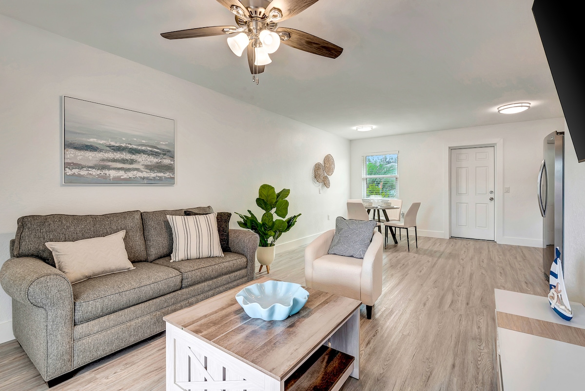 Aloha ja tervetuloa saarekotiimme – Ohana Haleen Ohana tarkoittaa havaijiksi perhettä, ja juuri sellainen olet, kun majoitut luonamme. Tämä yhden makuuhuoneen sviitti on ihanteellinen pariskunnille tai pienelle perheelle. Lomakohteemme sijaitsee Anna Maria Islandilla, Floridassa, ja se on vain 7 minuutin kävelymatkan päässä valkoisista hiekkarannoista ja turkoosista vesistä. Tässä huoneistossa on 7 yön vähimmäismajoittumisvaatimus, mutta meillä on muita mahtavia kohteita, jos tarvitset lyhyemmän majoittumisen, ota meihin yhteyttä!