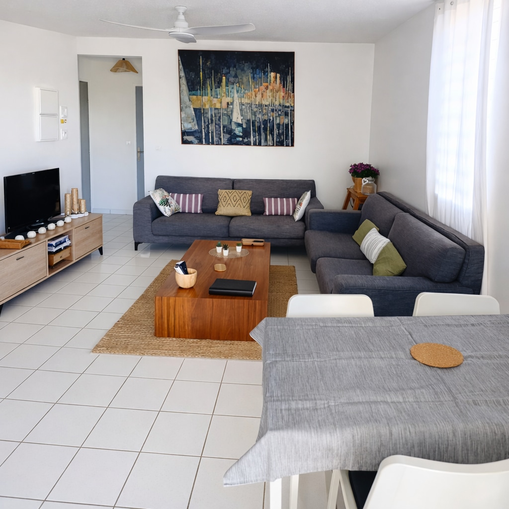 Hyvät vieraat! Majoitu meren rannalla ja 100 metrin päässä kauniista valkohiekkaisesta rannasta Les Trois-Îletsissä ainutlaatuisessa 3 makuuhuoneen huoneistossamme, jossa on suuri merinäkymä terassilla, jota ei näy. La Pointe du Bout on yksi saaren suosituimmista paikoista, jossa hiekkarannat, vilkkaat ravintolat ja kreikkiläinen tunnelma kohtaavat. Tämän vilkkaan ja aidon naapuruston sydämessä on tuleva lomakotisi: tilava huoneisto, joka on suunniteltu rentoutumiseen ja mukavuuteen henkeäsalpaavilla näkymillä!