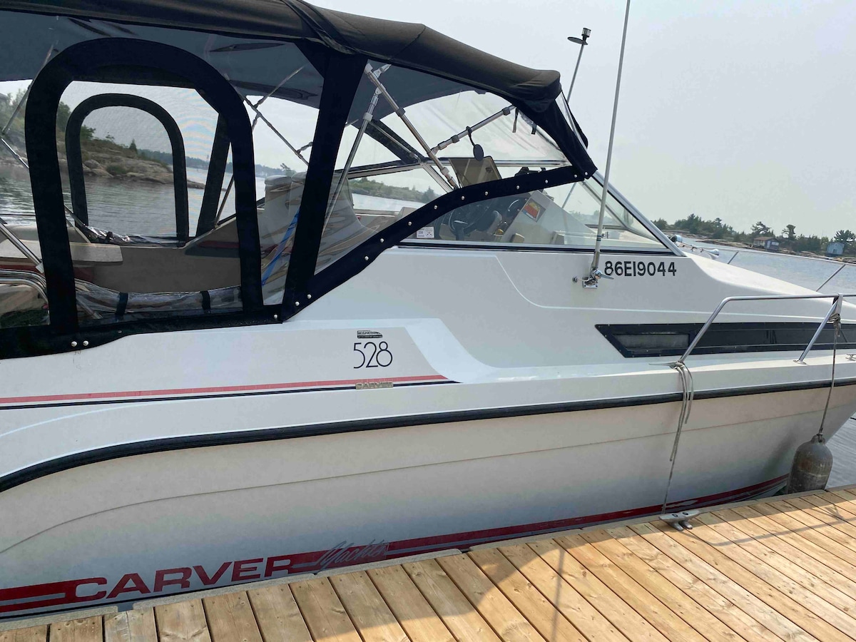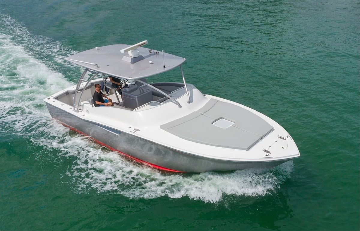 Veden äärellä sijaitseva 32 jalan Bayliner-jahti