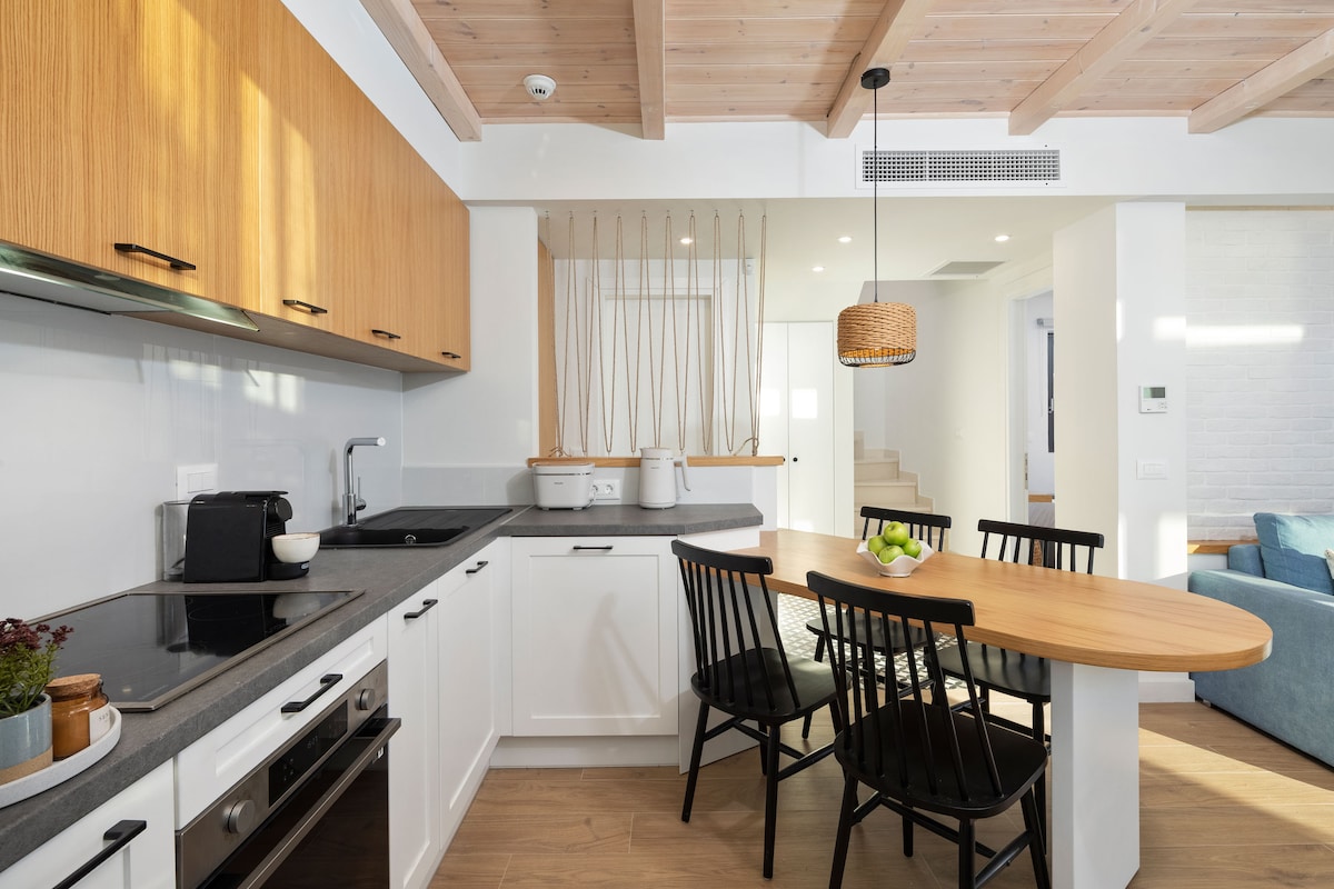 Pakene tähän viehättävään merenrantahuvilaan, jossa moderni muotoilu kohtaa henkeäsalpaavat näkymät. Suurista ikkunoista avautuu näkymä loputtomaan sinisyyteen ja unohtumattomiin auringonlaskuihin, mikä luo täydellisen tunnelman rentoutumiseen. Hieman talon alapuolella on ainutlaatuinen ranta – puoliksi hiekkaa, puoliksi pikkukiviä – joka kutsuu sinut sukeltamaan kristallinkirkkaisiin vesiin mihin vuorokaudenaikaan tahansa. Harvinainen lomakohde, jossa yhdistyvät ylellisyys, rauhallisuus ja suora pääsy merelle unohtumattoman majoittumisen takaamiseksi.