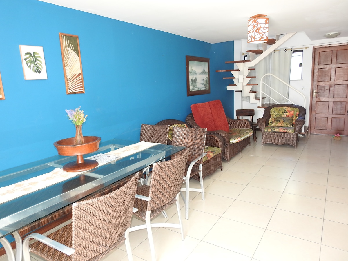 Huoneistomme sijaitsee noin 100 metrin päässä Praia Grandesta, yhdestä Arraial do Cabon kauneimmista ja tunnetuimmista rannoista, ja se on ihanteellinen perheille, lapsilla tai ilman, ja/tai enintään 9 hengen ystäväporukoille. Lähellä meidän kodikkuuttamme on useita ravintoloita ja baareja Orlan varrella. Erinomainen huoneisto, jossa on suuri olohuone, keittiö, suljettu parveke, josta voi tulla miellyttävä huone, josta on kaunis näkymä aamunkoitteessa; kolme makuuhuonetta ja kolme kylpyhuonetta.