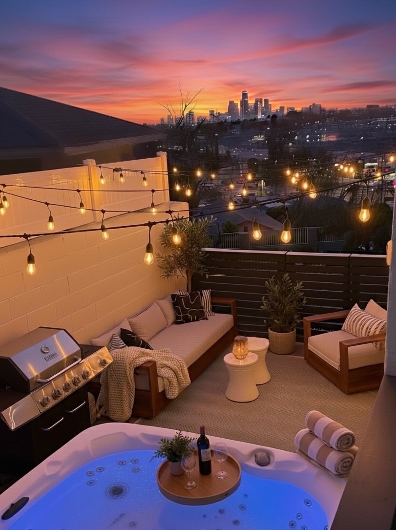 Kohde, josta on näkymät Los Angelesin kaupunkiin ja jossa on ulkojacuzzi