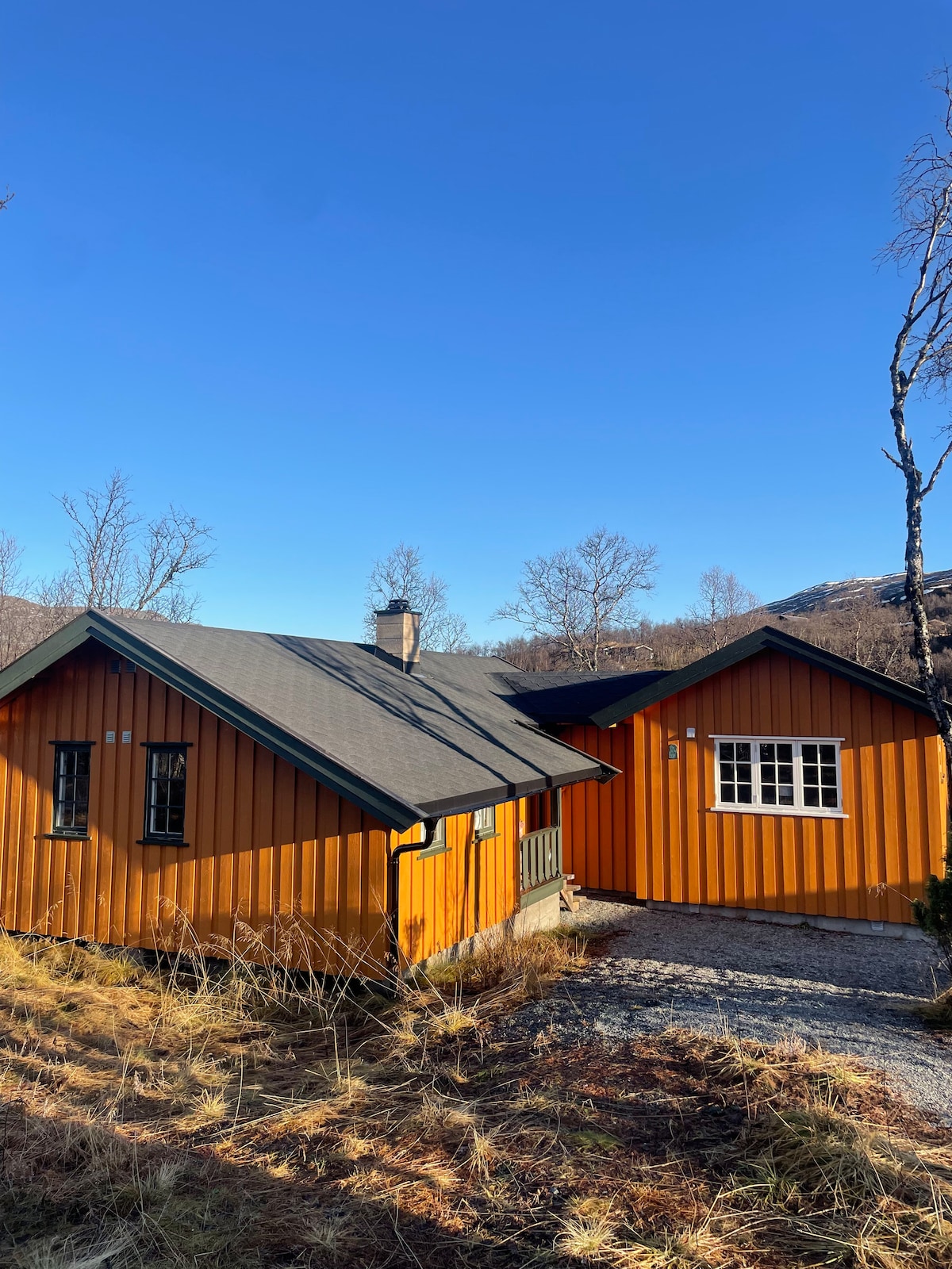 Welcome to our second home at Gramstølen! Situated ca. 3,5 hours from Oslo (250km) or Bergen (230km), our modern cabin at Gramstølen plays host to spectacular mountain views and provides a relaxing environment for family and friends. It's the ideal place to get away from the city and stretch your legs on a skiing trip or a hike, enjoy the slopes at Tyin or Hemsedal, or simply unwind while taking in the amazing views from the living room or outside on the terrace in front of our firepan.