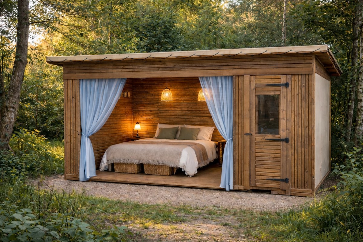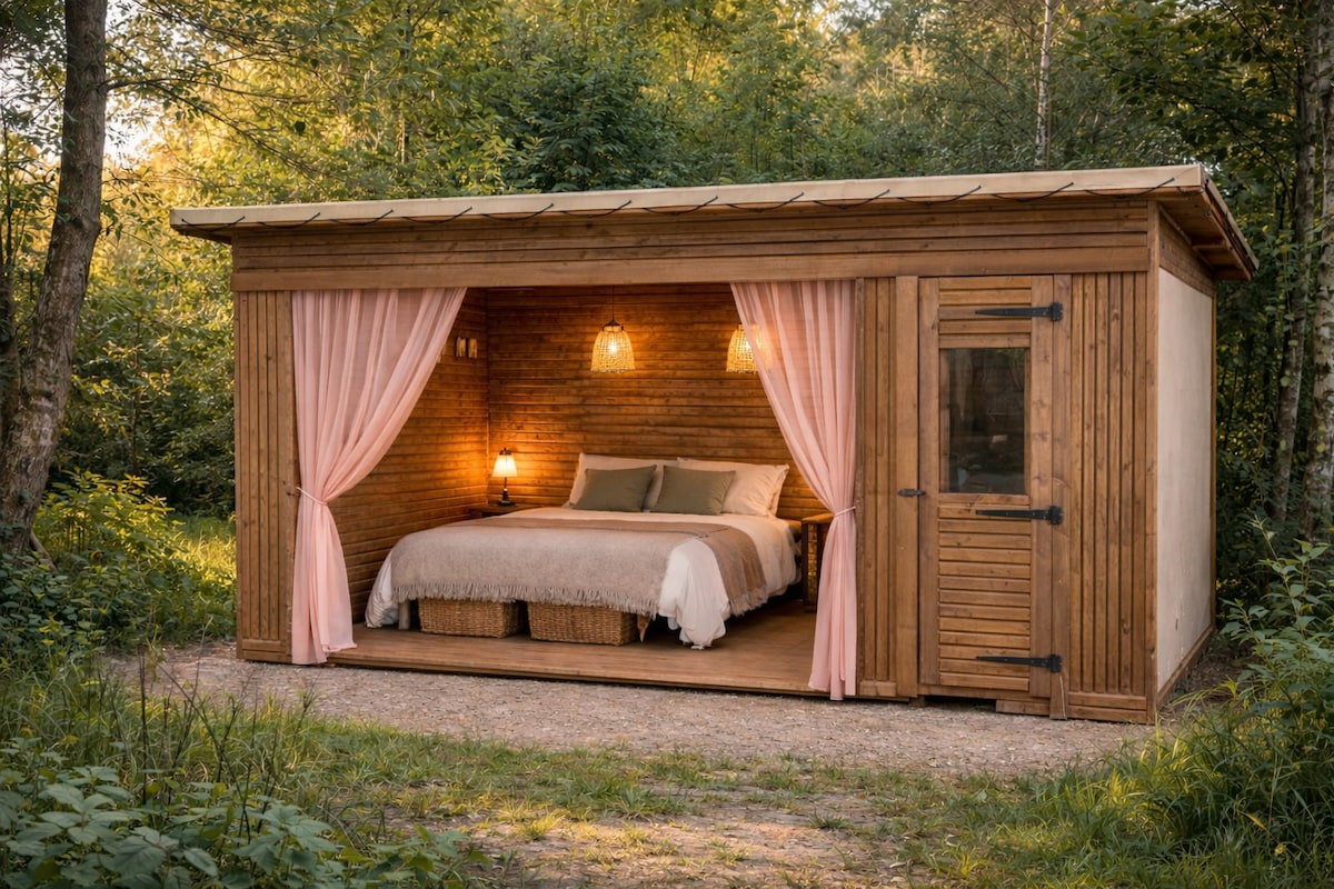 Metsän ja laajojen avoimien tilojen välissä Ardèche-vuoren sydämessä. Puinen asuntovaunu, epätavallinen, luonnon ympäröimä, ihanteellisella paikalla keskellä vuorta 1260 metrin päässä. Paikalla on koirarekirakennelma. Aktiviteetit ympäri vuoden 🐾 Luonnon ja eläinten rakastava asuntovaunumme odottaa sinua unohtumattomaan itsenäiseen majoittumiseen. Rajanaapureita ovat Ardèche, Lozère ja Haute Loire. Ihanteellinen vihreä matkailu, ulkoilma-aktiviteetit ja yhteys elämän yksinkertaisiin asioihin. ⛰️☀️🌲❄️🐾🍂🪶