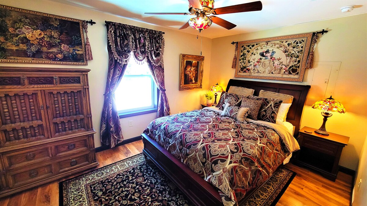 Rentoudu tässä maaseutuhuoneistossa, josta on helppo pääsy vanhaan kaupunkiin ja vain muutaman kilometrin päässä I-95:stä. Löydä mukavuutta tyylikkäästä makuuhuoneesta tai nauti ensiluokkaisesta kotiteatterielämyksestä 77 tuuman 4k HDR -television ja surround-äänen avulla. Hyvin varusteltu keittiö ja ilmainen kahvi ja tee sisältyvät hintaan. Käytettävissäsi on uusi höyrypesukone/kuivain sekä nopea WiFi. Toimistotila on varattavissa niille, jotka tekevät etätöitä. Hiljainen alue, jossa on paljon luontoa talon ympärillä!