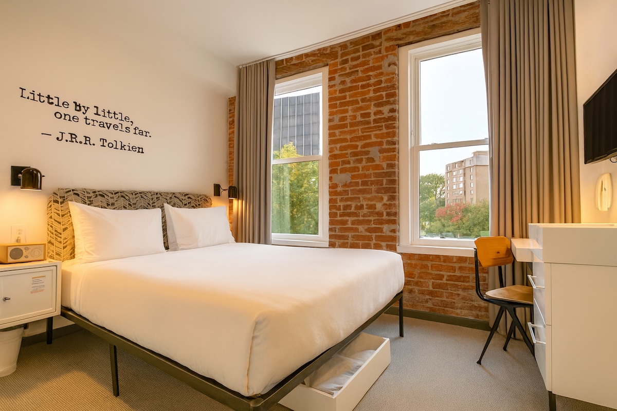 Löydä rauha pääkaupungista Hotel Maderasta, palkitusta boutique-hotellista Dupont Circlen sydämessä. Tämä urbaani retriitti on Condé Nast Travellerin vuoden 2024 Readers' Choice Award -palkinnon voittaja. Se tarjoaa yllättävän rauhallisen majoituksen vain muutaman askeleen päässä Washington D.C.:n ikonisista maamerkeistä, museoista ja vilkkaasta ruokakulttuurista. Hotelli sijaitsee rauhallisalla, puiden reunustamalla kadulla, ja se tarjoaa täydellisen tasapainon rauhallisuuden ja yhteyksien välillä. Dupont Circle ja National Mall ovat vain lyhyen kävelymatkan päässä.