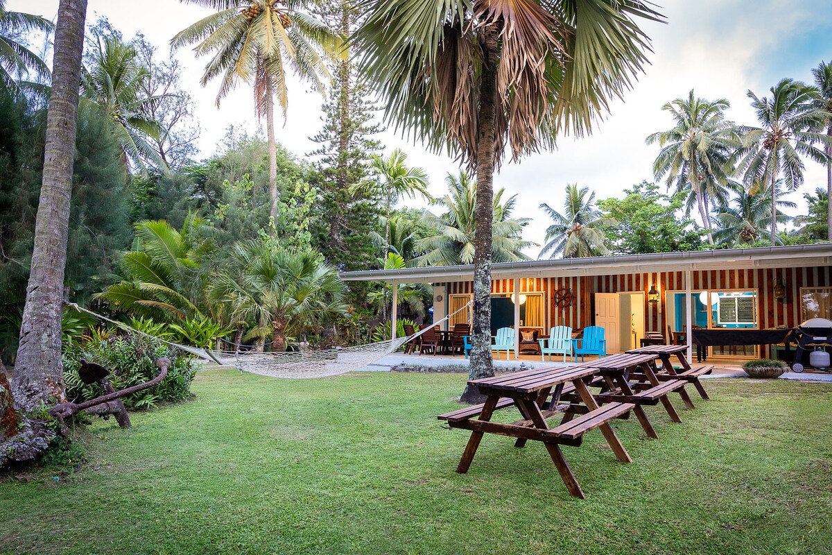Tilava rantahuvilamme on vain muutaman askeleen päässä rannalta. Siellä on suuri kuisti ruokailuun ja rentoutumiseen, ja sieltä on selkeä näkymä merelle. Huvilassa on esillä paikallisten taiteilijoiden teoksia, jotka luovat eloisan ja lämpimän Cookinsaarten tunnelman. Kun meri on ovellasi, riippumatot ja auringonlaskunäkymät ovat täydellinen paikka rentoutua, rentoutua ja nauttia saarella elämästä. Meillä on rajoittamaton internet (Starlinkin kautta) ja olemme asentaneet UV-suodattimen juomavettä varten.