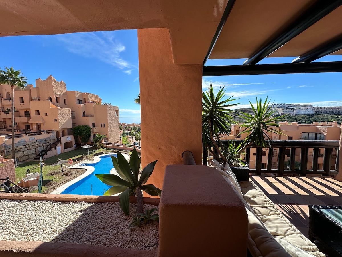 Huoneisto La Duquesan alueella, josta on poikkeuksellinen näkymä rannikolle ja satamaan. La Duquesan satama on upea huvivenesatama. Sen rauhalliset rannat ja miellyttävä lämpötila ympäri vuoden tekevät siitä yhden Costa del Solin parhaista satamista. Ihanteellinen golfin ystäville, sillä sen ympäristössä on yksi maailman suurimmista golfkenttien keskittymistä (Golf de la Duquesa, Dona Julia, Golf de Casares ja maailmankuulu Golf Finca Cortesin).
