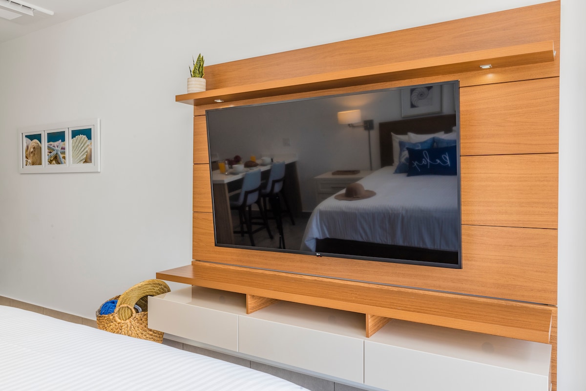 ✓Tervetuloa kauniiseen yksiöön, josta on merinäkymä, Aruban keskustassa Harbour Housessa. Tämä viidennessä kerroksessa sijaitseva yksiö on 10 minuutin ajomatkan päässä lentokentältä ja kävelymatkan päässä monista baareista, ostoksista, elokuvateattereista ja ravintoloista. Nauti mukavuuksista, kuten infinity-altaasta, porealtaista ja kuntosalista. Yksikössä on kaikki, mitä tarvitset lomasi hyödyntämiseen (ilmainen nopea internet, Netflix, yksityinen pysäköinti, ympärivuorokautinen turvallisuus, rantapyyhkeet ja -tuolit sekä täysin varusteltu keittiö).