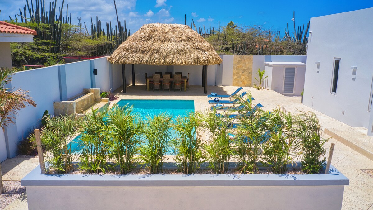Tervetuloa Villa Rinascenteen! Tämä kaunis, äskettäin rakennettu, täysin aidattu yksityinen huvila on kotisi poissa kotoa aurinkoisella Aruban saarella. Tämä moderni saarityylinen 3 makuuhuoneen huvila on kaikki, mitä tarvitset pieneen oleskeluun. Nauti täysin aidatusta kohteesta, jossa on monia nojatuoleja kauniin uima-altaan ympärillä, tai rentoudu varjossa palapan alla. Sijaitsee aivan Palm Beachin tien varrella ja on alle 5 minuutin ajomatkan päässä korkealta hotellialueelta ja kauniilta Palm Beachiltä ja maailman huippuluokan Eagle Beachiltä.