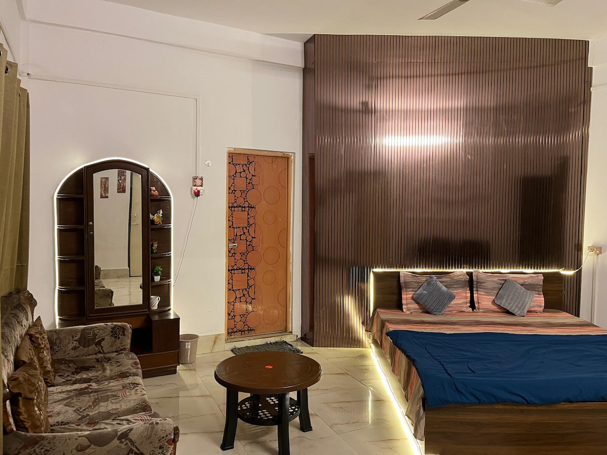Moderni 2 makuuhuoneen huoneisto, jossa on runsaasti avointa tilaa, parvekkeet, täysin varustettu keittiö, ilmastointi molemmissa makuuhuoneissa, 24*7 kuumaa vettä, ilmainen WI-FI ja teho varmuuskopiointi. Ilmaista teetä/kahvia, välipaloja vieraalle. Ilmaisia hygieniatarvikkeita. Täydellinen perhe- tai liikematkailijoille. Huoneisto sijaitsee keskeisellä paikalla, ja siinä on kaikki, mitä tarvitset mukavaan majoittumiseen tai jopa kotoa käsin. Studio-huoneisto aivan sen vieressä, jos joku tarvitsee sitä suuremmalle perheelle.