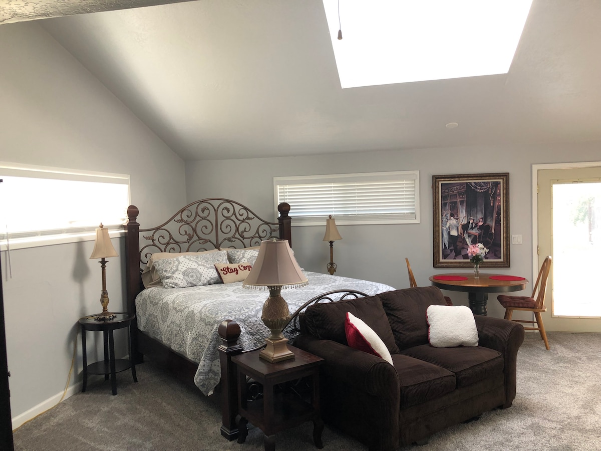 *HUOMAA*: Desinfioimme kaikki pinnat ennen uusien vieraiden saapumista ja sen jälkeen. Studio-sviitti, jossa on yksityinen sisäänkäynti. Mukava, kevyt, puhdas ja ilmava. Majoittaja paikan päällä viereisessä kodissa. Aamiaiskulma kahvilla ja teellä. Naapurusto on hiljainen, ja ostosmahdollisuudet ja ruokapaikat ovat lähellä. Vain yksi pieni askel yksikköön. Kiinteistössä on myös toinen 2 makuuhuoneen Airbnb-yksikkö, Comice Valley Inn, siltä varalta, että sinulla on suurempi seurue. Tämä on uusi ilmoitus, joten katso joitakin monista 5 tähden arvosteluistani.