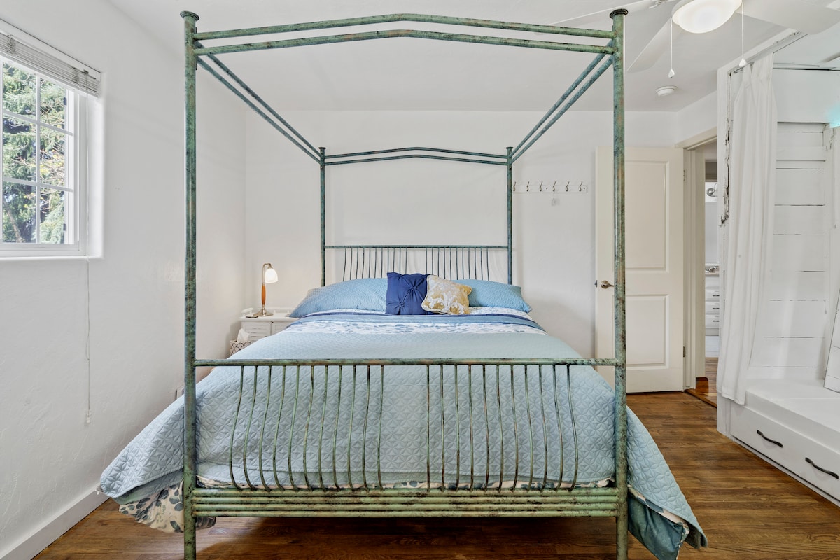 Britt Bungalow on palkittu boutique-tyylinen majoituspaikka Jacksonvillen Oregonin historiallisessa sydämessä, jonka omistaja ja isäntä ovat luoneet ja suunnitelleet.Nauti kylpylämäisestä yksityisestä lomasta kahden makuuhuoneen ja kahden kylpyhuoneen mökissä, jossa on 4,3 metrin korkuiset katot, tuoreita kukkia kaikkialla, ykköseksi arvioitu Dreamcloud-patja päämakuuhuoneessa sekä takka ja avoin olohuone, jossa on runsaasti luonnonvaloa.Sinulta ei puutu mitään majoittumisen aikana. Vain kahden korttelin päässä raitiovaunusta, kaikista parhaista ravintoloista, putiikeista, Britt Gardensista ja paljon muuta