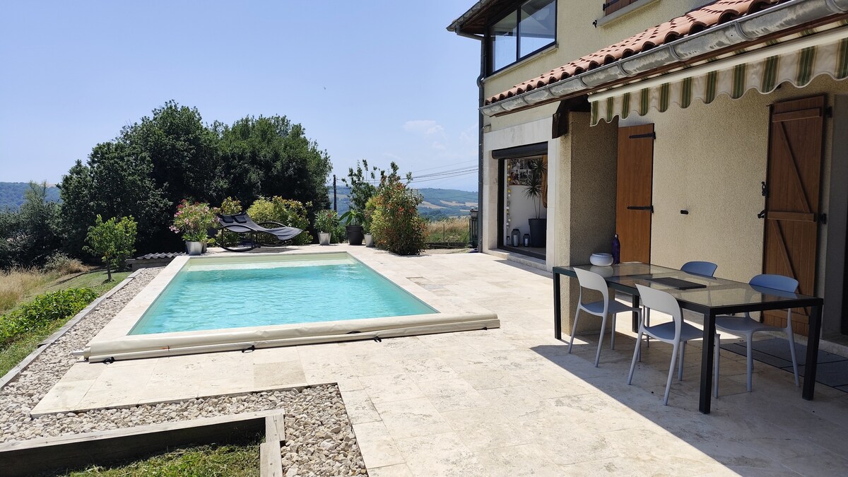 Pilatin luonnonpuiston sydämessä, lähellä Ardèchea, josta on suora pääsy vaellusreiteille. Uusi itsenäinen majoitus, jossa on oma kylpylä, integroitu, queen-vuode, hierontapöytä, terassi, jonne pääsee kylpylästä ja josta on näkymät Alpeille ja Mont Blancille kirkkaana päivänä. Suuri terassi yläkerrassa. Pysäköinti sisäänkäynnillä. Kaikki mukavuudet, joita tarvitset kauniiseen lomaan vihreässä ja etuoikeutetussa ympäristössä. 30 min A7: stä, 1 tunti Lyonista. Liinavaatteet, pyyhkeet, kylpytakit sisältyvät hintaan.