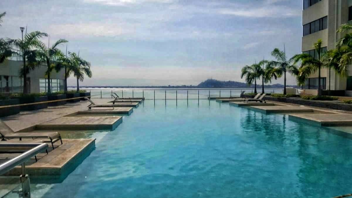 Se on erittäin mukava ja viihtyisä sviitti Guayaquilin parhaalla alueella, josta on näkymät Guayas-joelle, joka sijaitsee Puerto Santa Ana Edificio Torres Bellini I: ssä keskeisellä sektorilla 5 minuutin päässä lentokentältä, yöelämästä, ravintoloista, muutaman metrin päässä Wyndham-hotellista, joka on ihanteellinen matkailijoille tai matkailijoille. Se sisältää wifin, Netflixin ja kaiken, mitä tarvitset miellyttävään majoittumiseen. Rakennuksessa on oma voimalaitos.